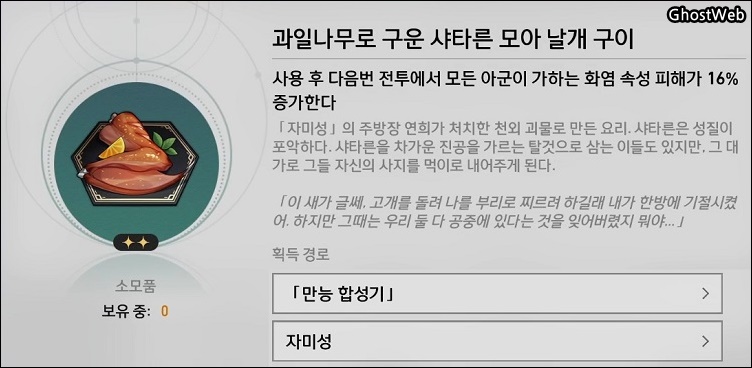 7. 과일나무로 구운 샤타른 모아 날개 구이 - 레시피 (20000)