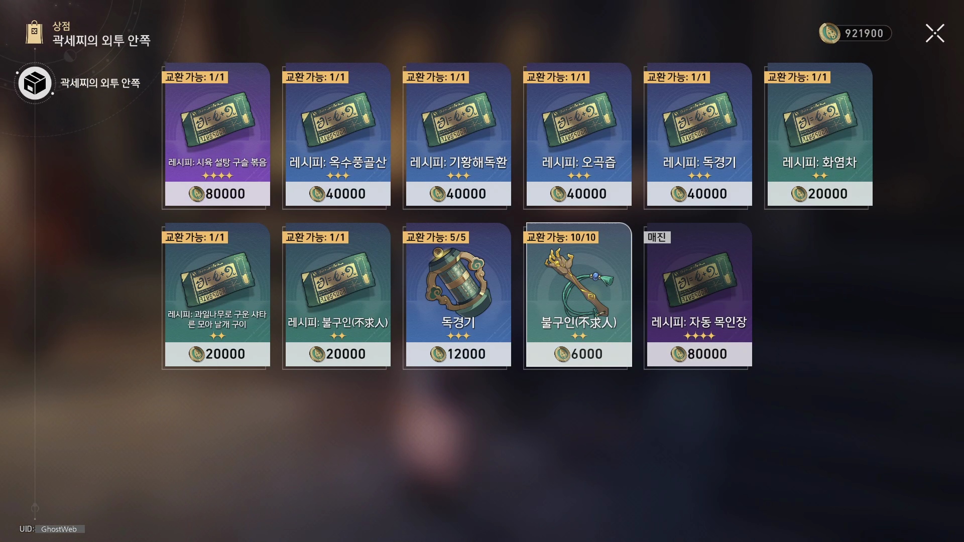 과세찌한데는 각종 레시피 등을 구매할 수 있는데, 다른 NPC와 다르게 금 조각상 거리 상회가 관리하는 예비금인 [ 상회 예비금 ]으로 구매할 수 있어요. (화물 적재)