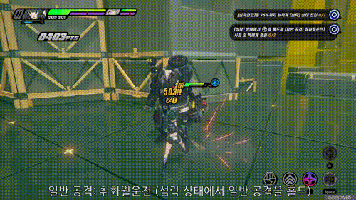 - [섬락] 상태에서 일반 공격을 홀드해 시전