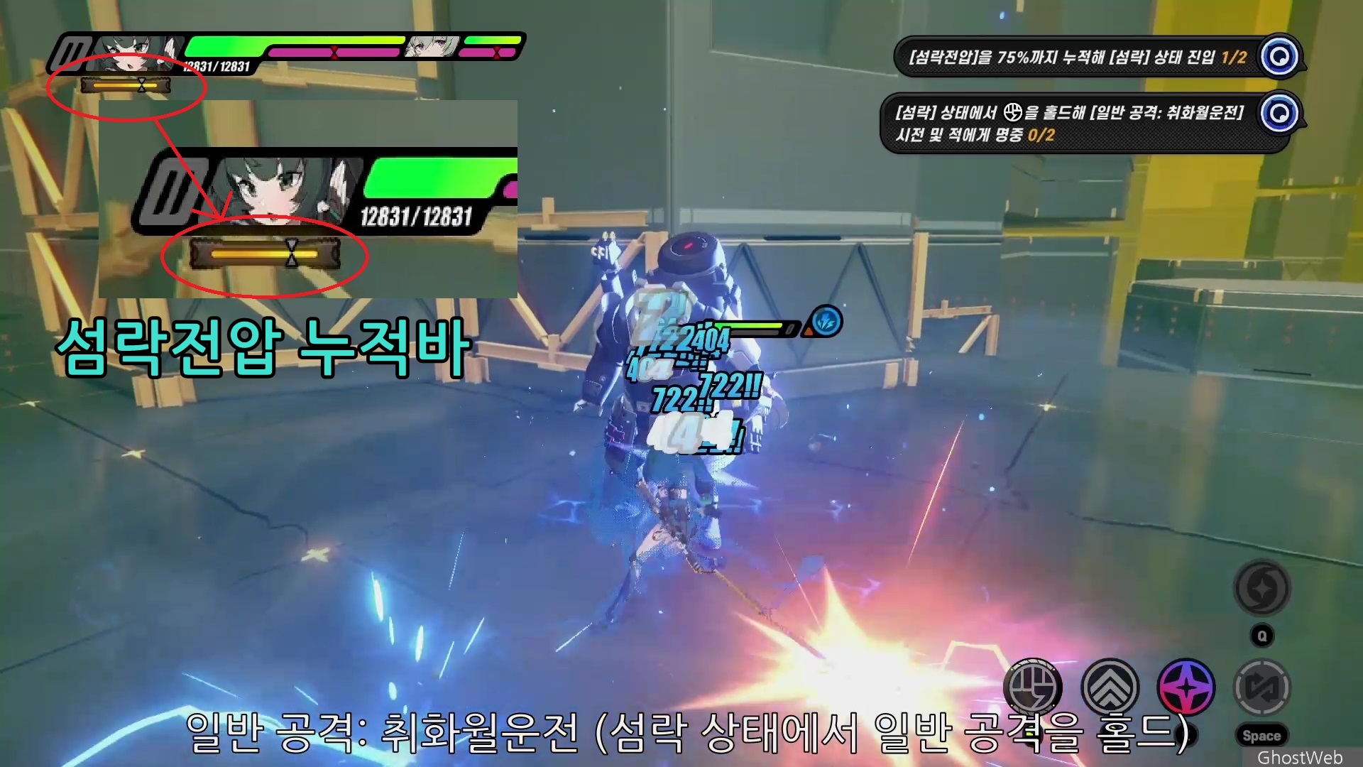 - [섬락] 상태에서 일반 공격을 홀드해 시전