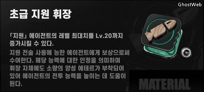 - 지원 수련 : 초급 지원 휘장, 고급 지원 휘장