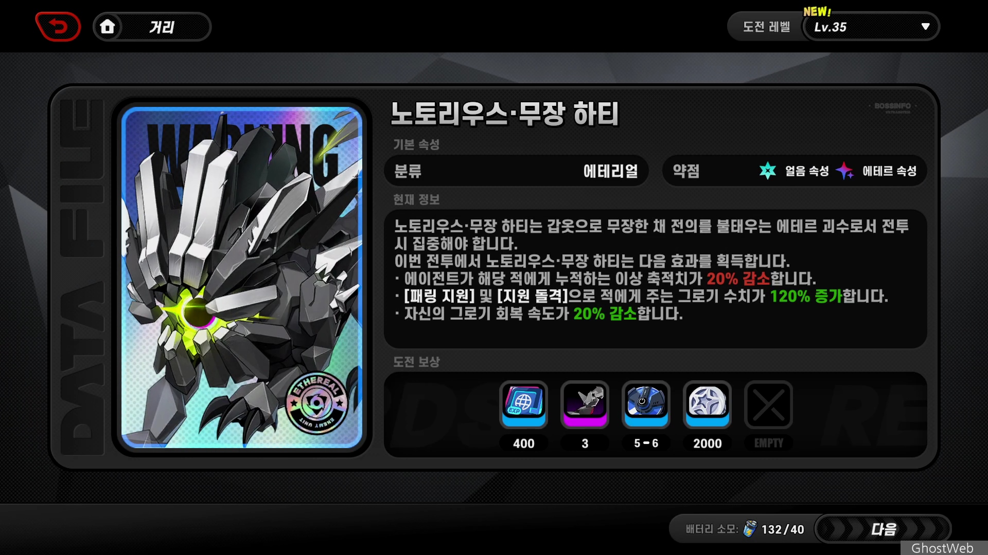 에이전트 레벨업/진급/스킬, W-엔진 경험치, 데니, 디스크 경험치를 보상으로 얻을 수 있는 곳으로 도전 레벨과 몬스터 구성에 따라 얻는 보상의 수량이 달라질 수 있어요.