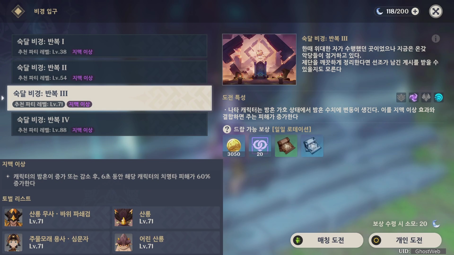 비경은 총 4개의 레벨이 필요한데 높은 비경일 수록 높은 등급의 소재를 얻을 수 있어요.