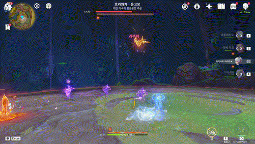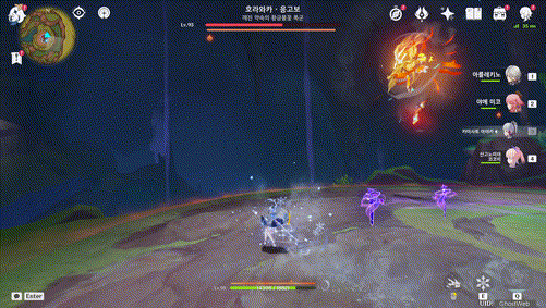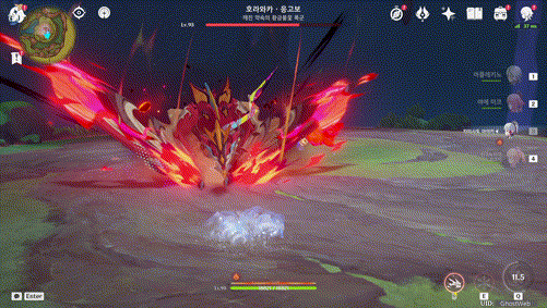 전투 중 하늘로 올라가는 유도체, 근접 공격을 하는데 열풍 깃털 파괴, 불 방어막 제거 등을 하면 하늘에서 땅으로 떨어져 일정 시간동안 넉 다운 상태가 되니 이때 모든 공격을 퍼 부으면 돼요.