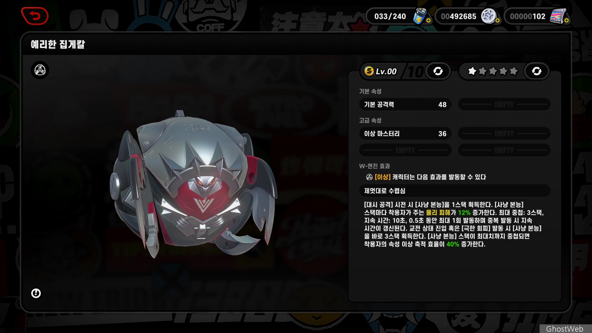 | 5 | 비축하는 습관 | 일반 공격, 회피, 지원 스킬, 특수 스킬, 콤보 스킬의 스킬 레벨 + 2 |