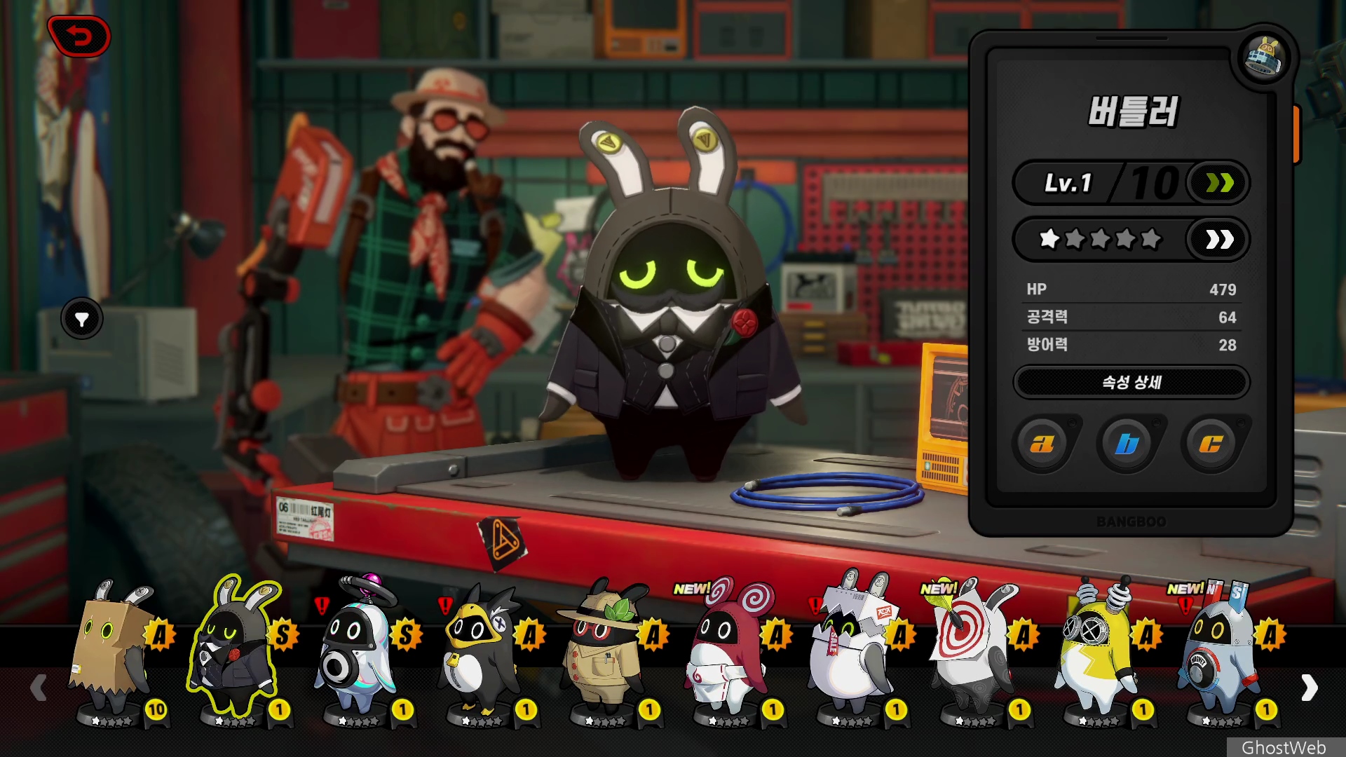 방부는 전투 버프와 보조를 할 수 있는 친구로 전투 파티 구성 시 오른쪽 하단을 클릭하면 함께 갈 방부를 선택할 수 있어요.
