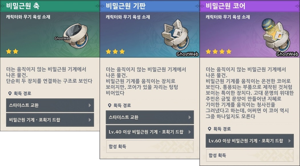 이번에는 캐릭터 & 무기 육성 소재인 비밀근원 축, 비밀근원 기판, 비밀근원 코어를 얻을 수 있는 비밀근원 기계 - 포획기 위치를 정리 해보도록 할게요.