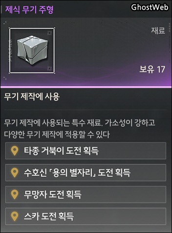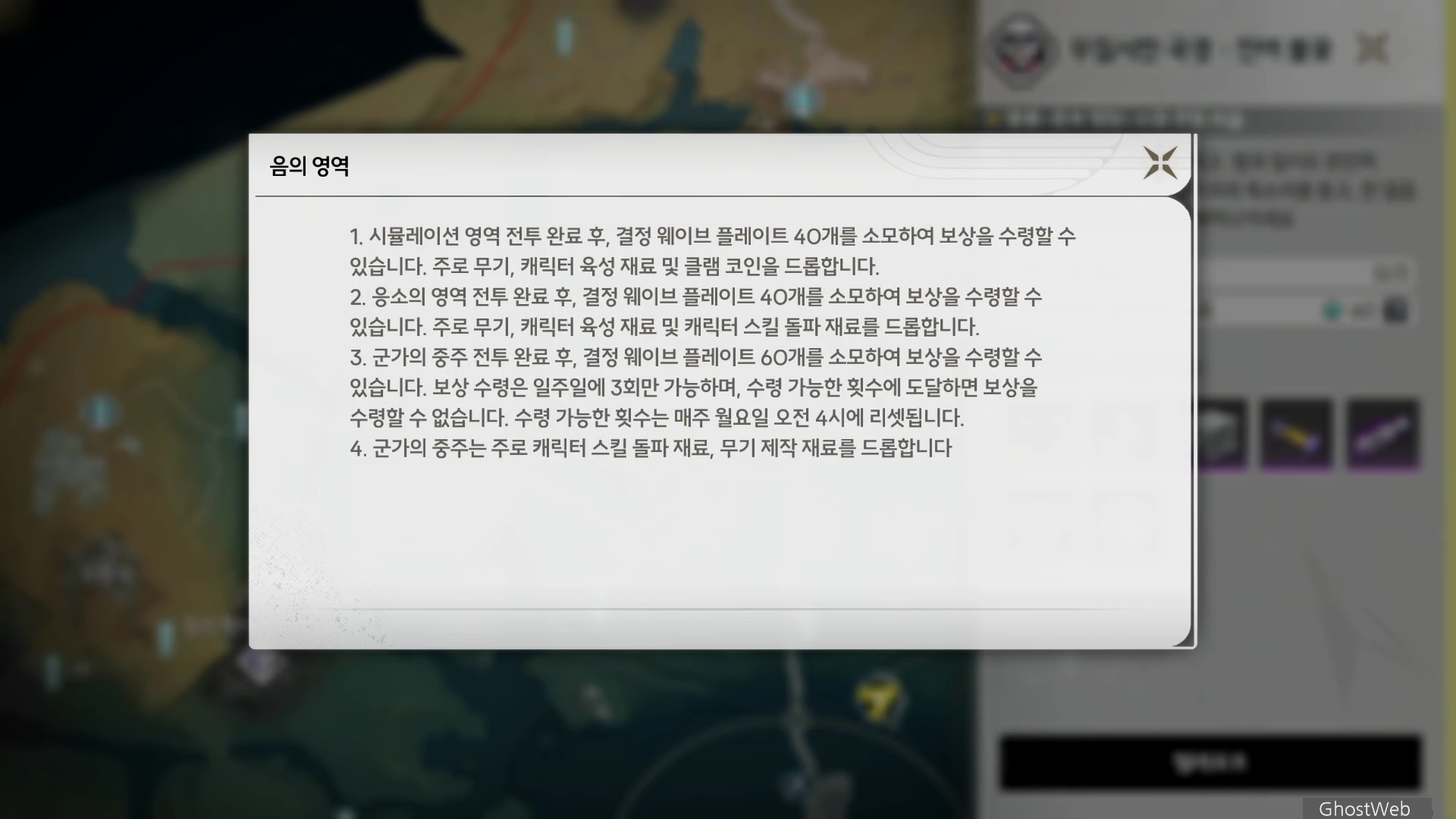 - 연간 경험치, 제식 무기 주형, 호감도, 클램 코인