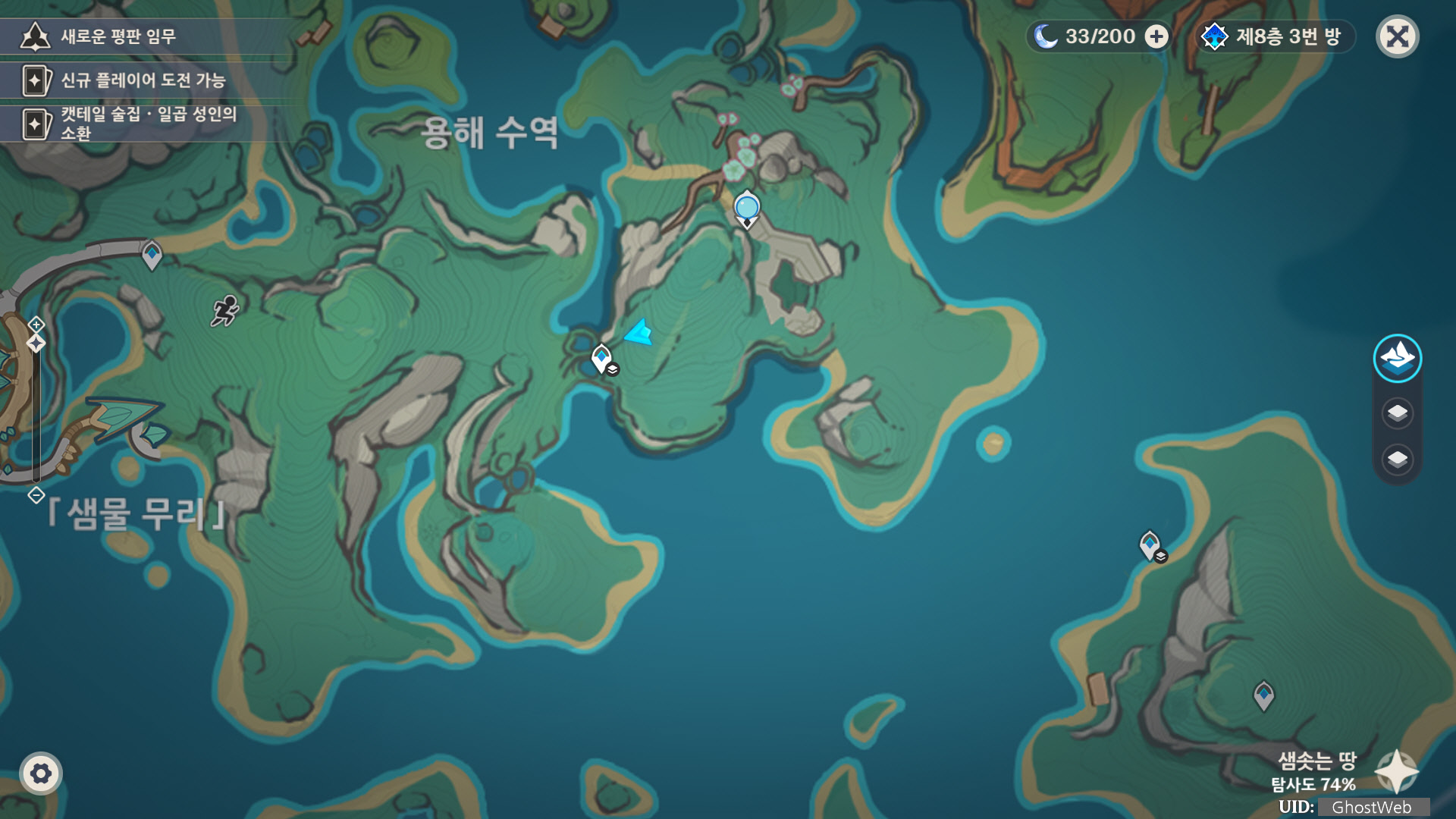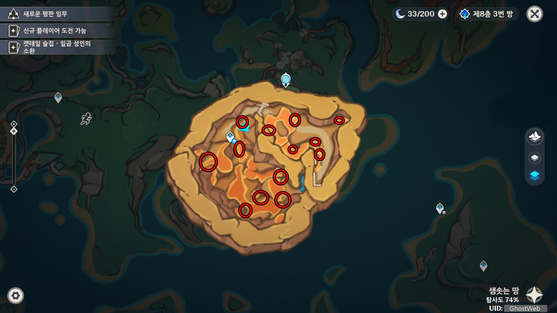 수정 열매는 용해 수역 근처에 있는 산 지하 마그마가 흐르는 방에 밀집하고 있으며, 마그마 옆에 있는 어용을 이용하여 편하게 획득할 수 있어요. (지하 워프 포인트 있음, 월드 임무 진행 가능)