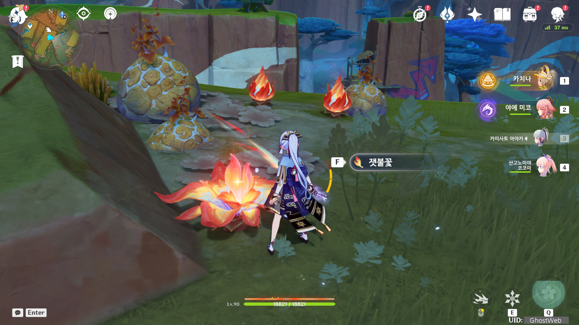 잿불꽃은 나타 산쪽 지역에 많이 분포하고 있는데, 잿불꽃을 파밍하기 위해서는 꽃을 공격하여 꽃봉우리를 열면 획득할 수 있어요.