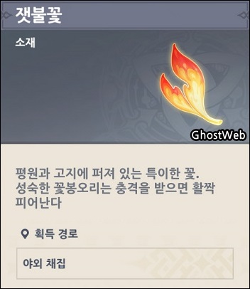 이번에는 나타에서 얻을 수 있는 소재인 잿불꽃을 파밍 가능한 위치를 정리해보도록 할게요.