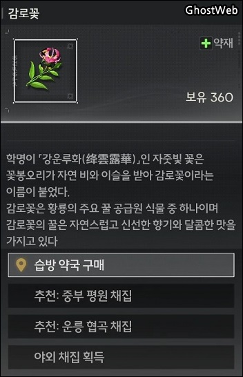 이번에는 약재인 감로꽃을 파밍 가능한 위치를 정리해보도록 할게요.