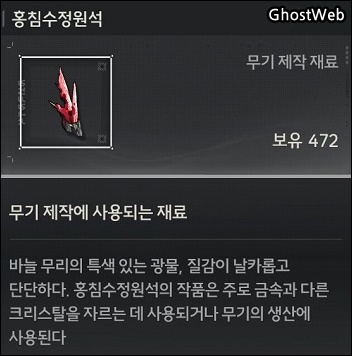 이번에는 무기 제작 재료인 홍침수정원석을 파밍할 수 있는 위치를 정리해보도록 할게요.