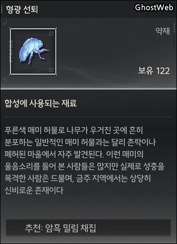 이번에는 약재인 형광 선퇴를 파밍 가능한 위치를 정리해보도록 할게요.