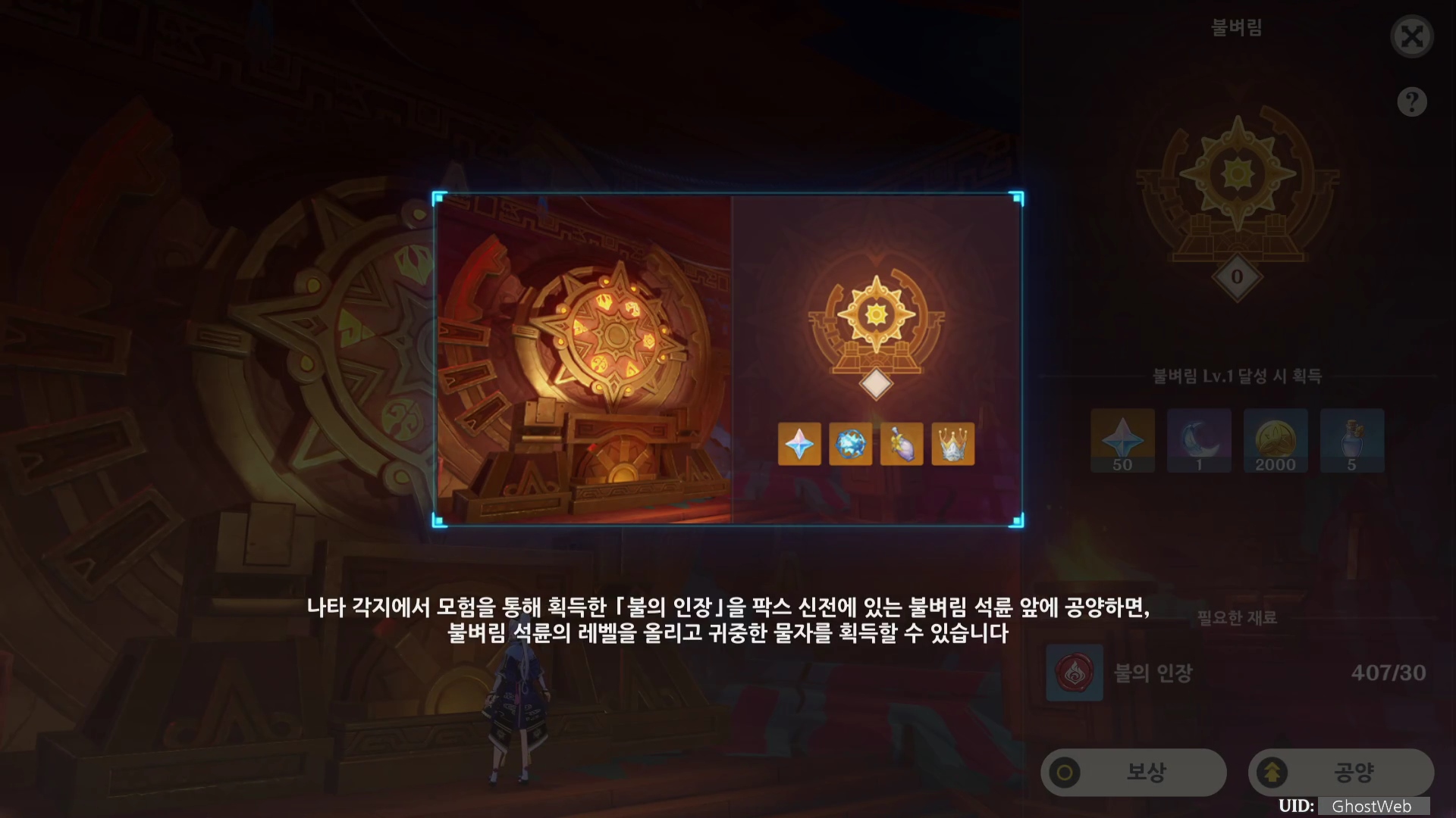 이번에는 나타 지역에서 보물 상자를 열어 얻은 [ 불의 인장 ]을 공양하여 보상을 얻을 수 있는 [ 불벼림 석륜 ]에 대해서 정리해보도록 할게요.