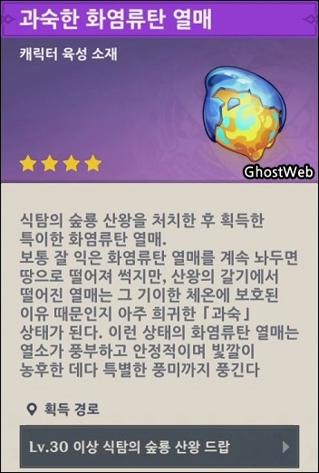- 과숙한 화염류탄 열매 (나타 - 식탐의 숲룡 산왕 콩가마토 처치)