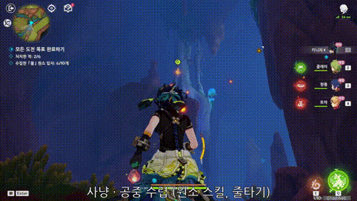 · 원소전투 스킬 [사냥 · 공중 수렵]으로 공중 줄타기 진행 후, 착지 전에 공중에서 일반 공격을 1회 진행할 수 있다.