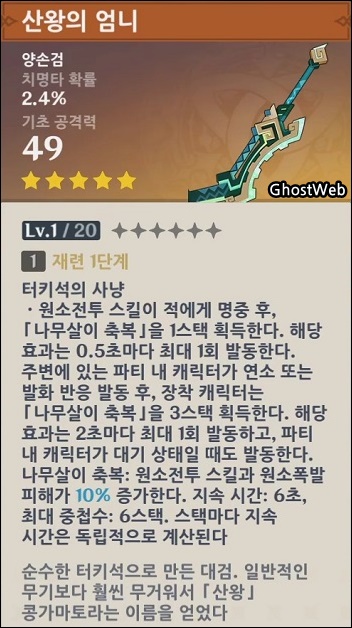 - 또한 비늘 관통포의 치명타 피해가 100% 증가한다.