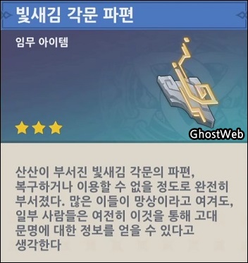 이번에는 나타 월드 임무인 [ 잠든 자에게 안식을 ]을 통해 얻은 빛새김 각문 파편을 사용할 수 있는 곳을 정리해보도록 할게요.