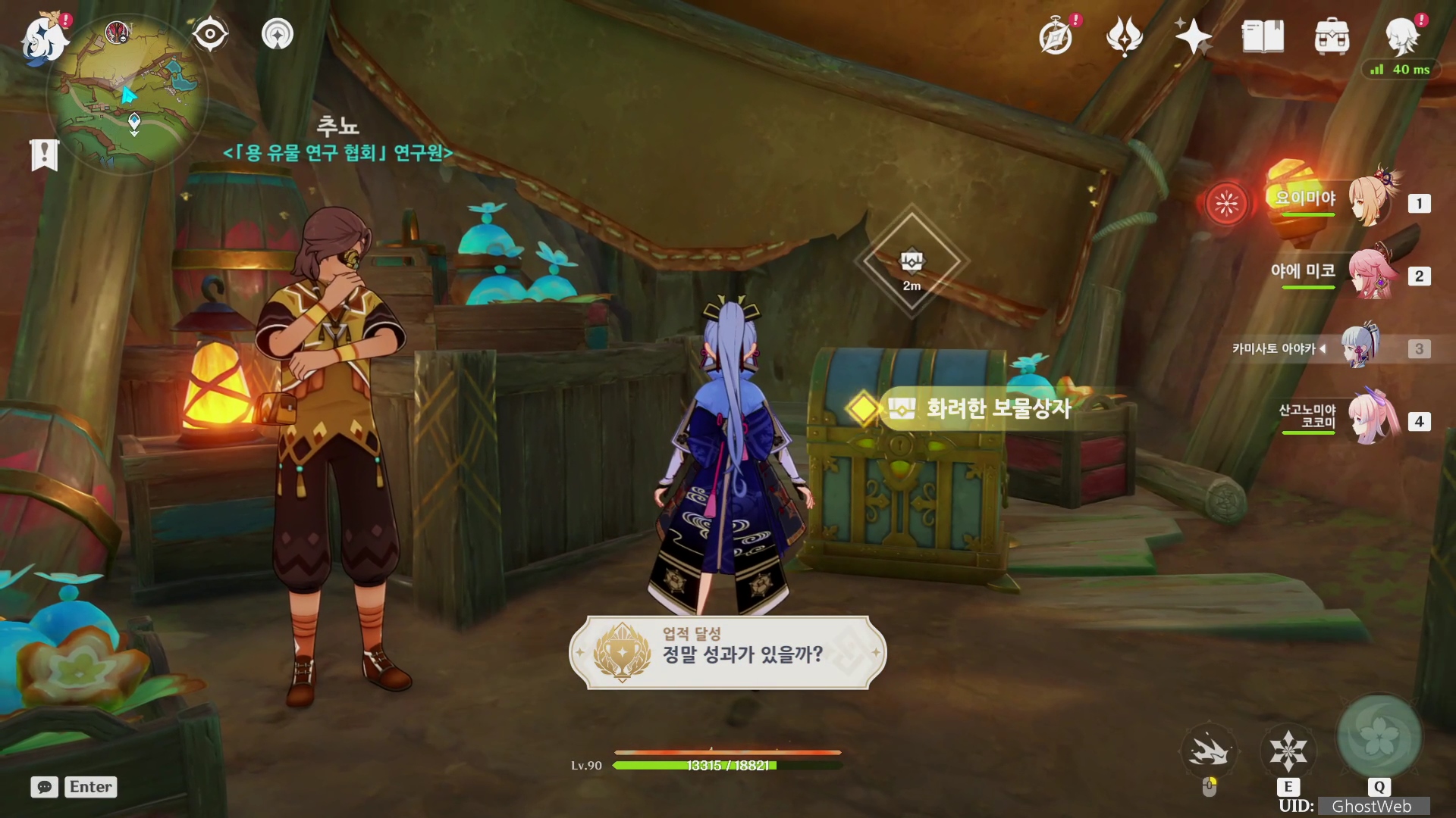 빛새김 각문 파편 4개를 찾아서 추뇨에게 가져다 주면 보수로 화려한 보물상자를 주며 정말 성과가 있을까라는 업적을 달성할 수 있어요.