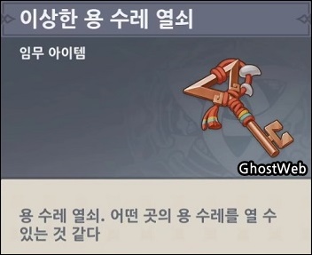 지도에 표시된 지역으로가서 보물 사냥단을 처치하고 수레에 다가가면 상호 작용을 하면 수레 문을 열려면 이상한 용 수레 열쇠가 필요로 하는데요.