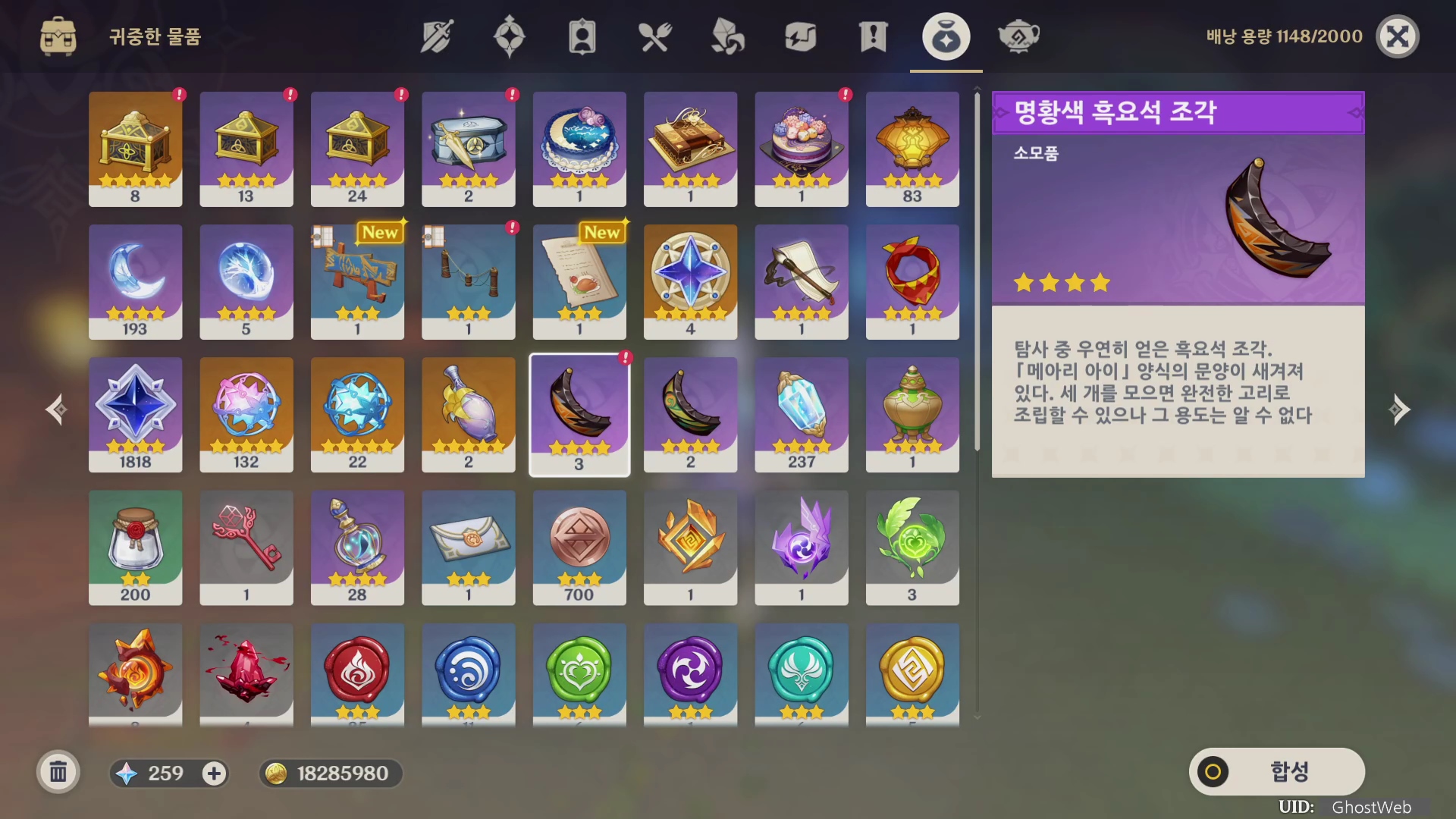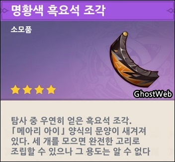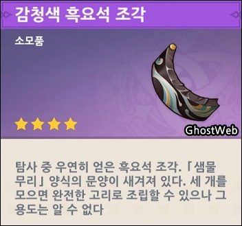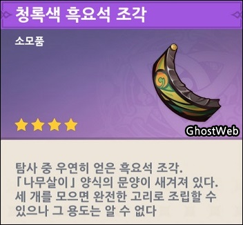 흑요석 조각이 나오는 보물상자(정교한 보물상자?)는 고정이 아니고 랜덤한 거 같으며, 나타 지역 월드 임무 등을 하면서 천천히 보물상자를 모아서 비밀 장소를 열어야 될 거 같네요.