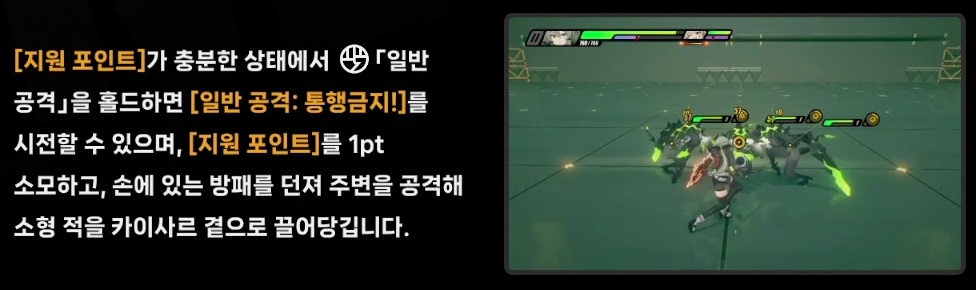 - 지원 포인트가 충분할 때 일반 공격 버튼을 홀드하여 시전