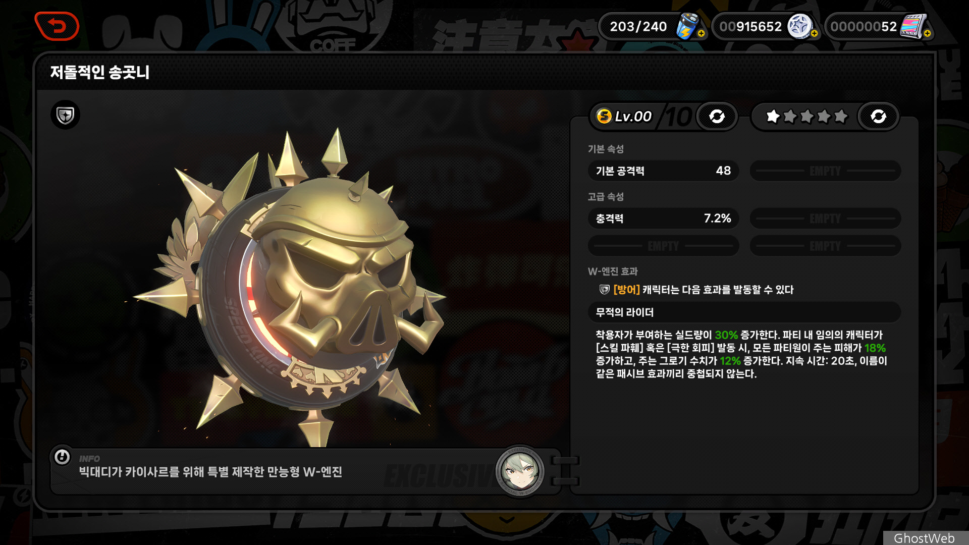 | A | 기본 충격력 6pt 증가 [핵심 패시브:강인한 벽] 스킬 레벨 + 1 |