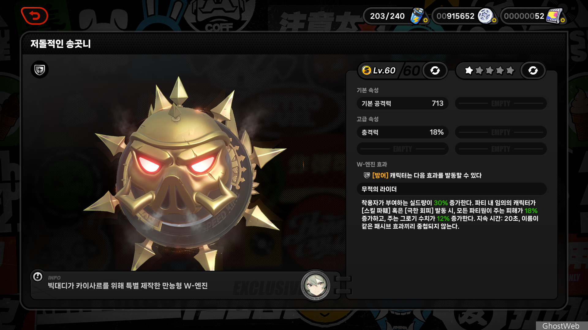 | E | 기본 충격력 6pt 증가 [핵심 패시브:강인한 벽] 스킬 레벨 + 1 |