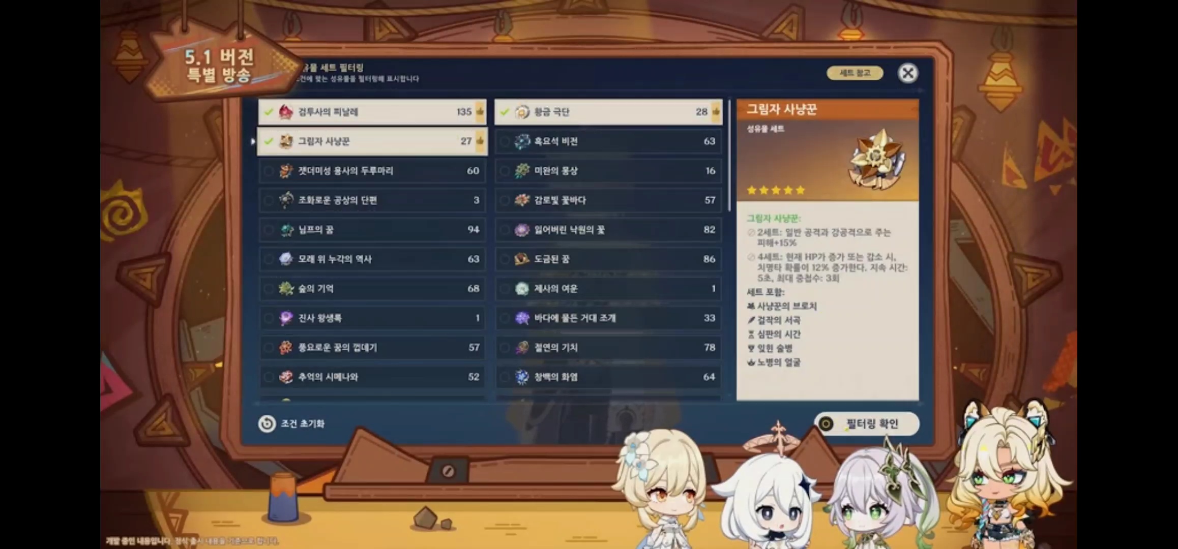 - 합성대에서 캐릭터와 육성 목표에 따라 레시피를 필터링하는 기능 추가