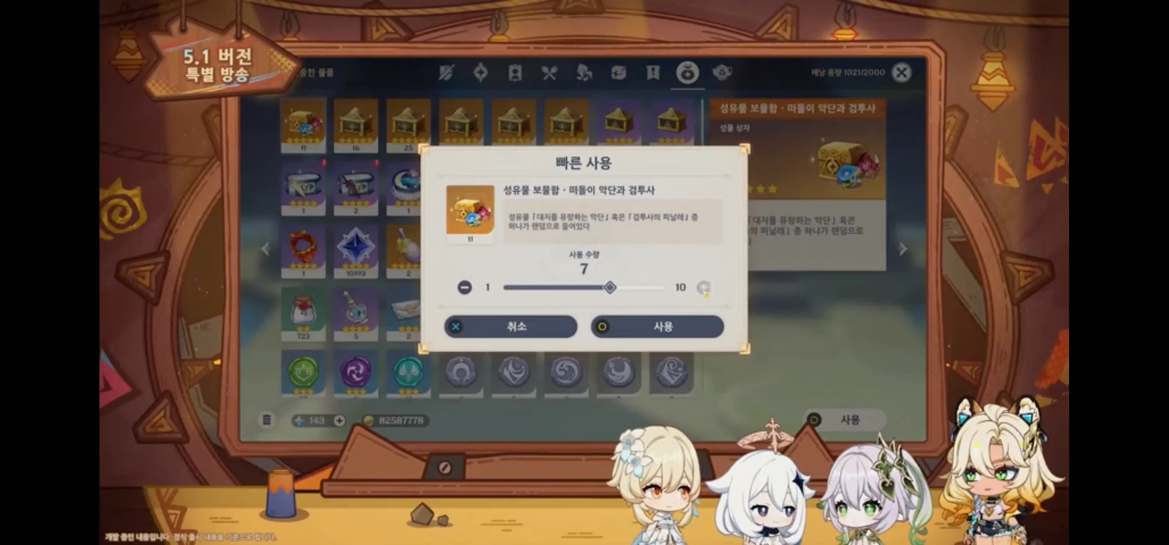 - 성물함 여러 개를 한 번에 열 수 있음