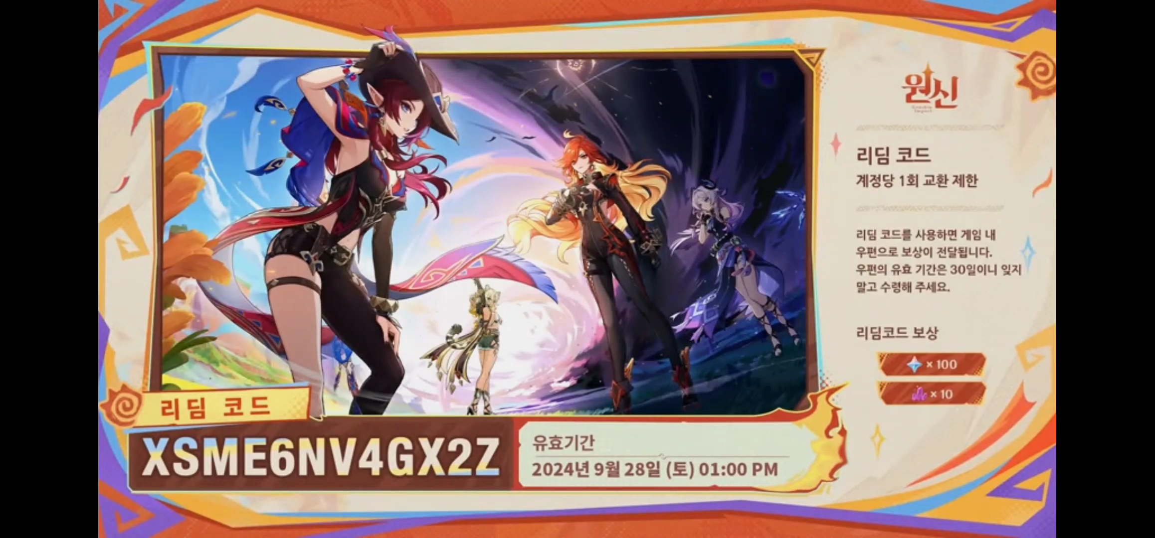 원신 업데이트 특별 방송 등을 보면 중간 마다 리딤코드라는 것을 보여주는데 이를 원신 홈페이지에서 입력하면 원석과 각 코드별로 아이템을 얻을 수 있어요. ※ 유효기간은 대부분 특별 방송