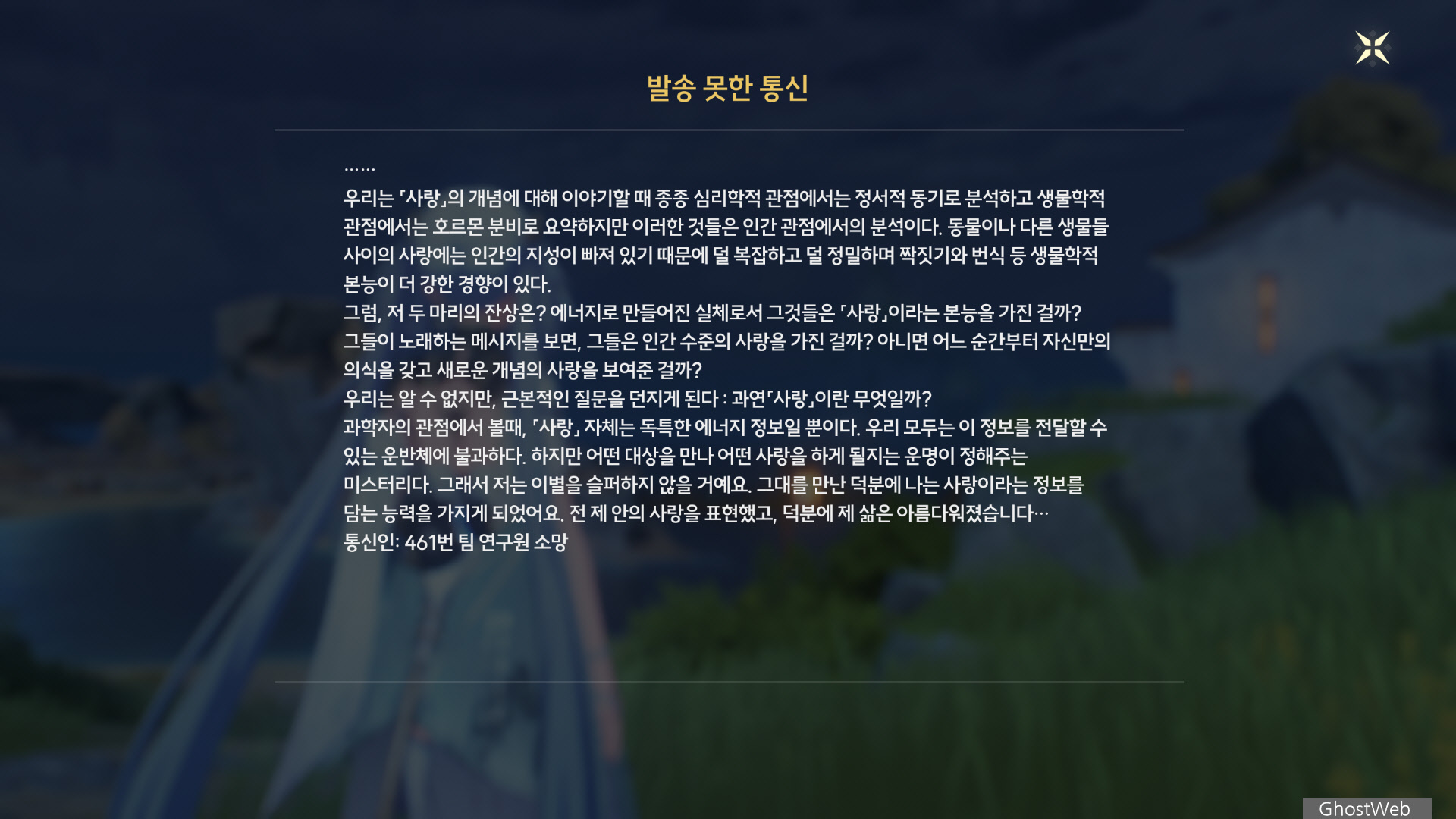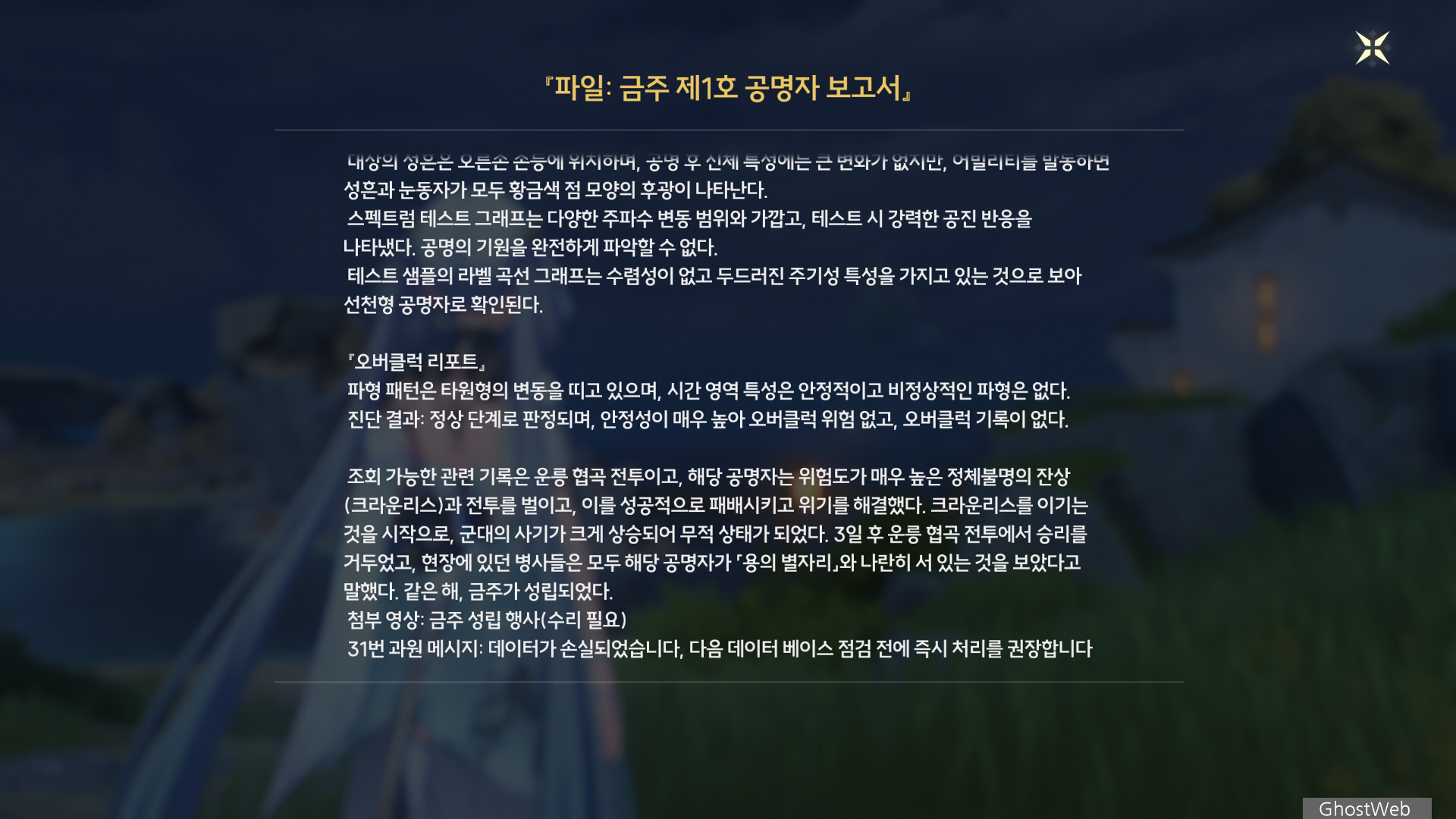 | [명조] 돌아갈 곳이 없는 오류 (파수인 돌파 소재, 고요한 위상) (0) | 2024.10.03 |