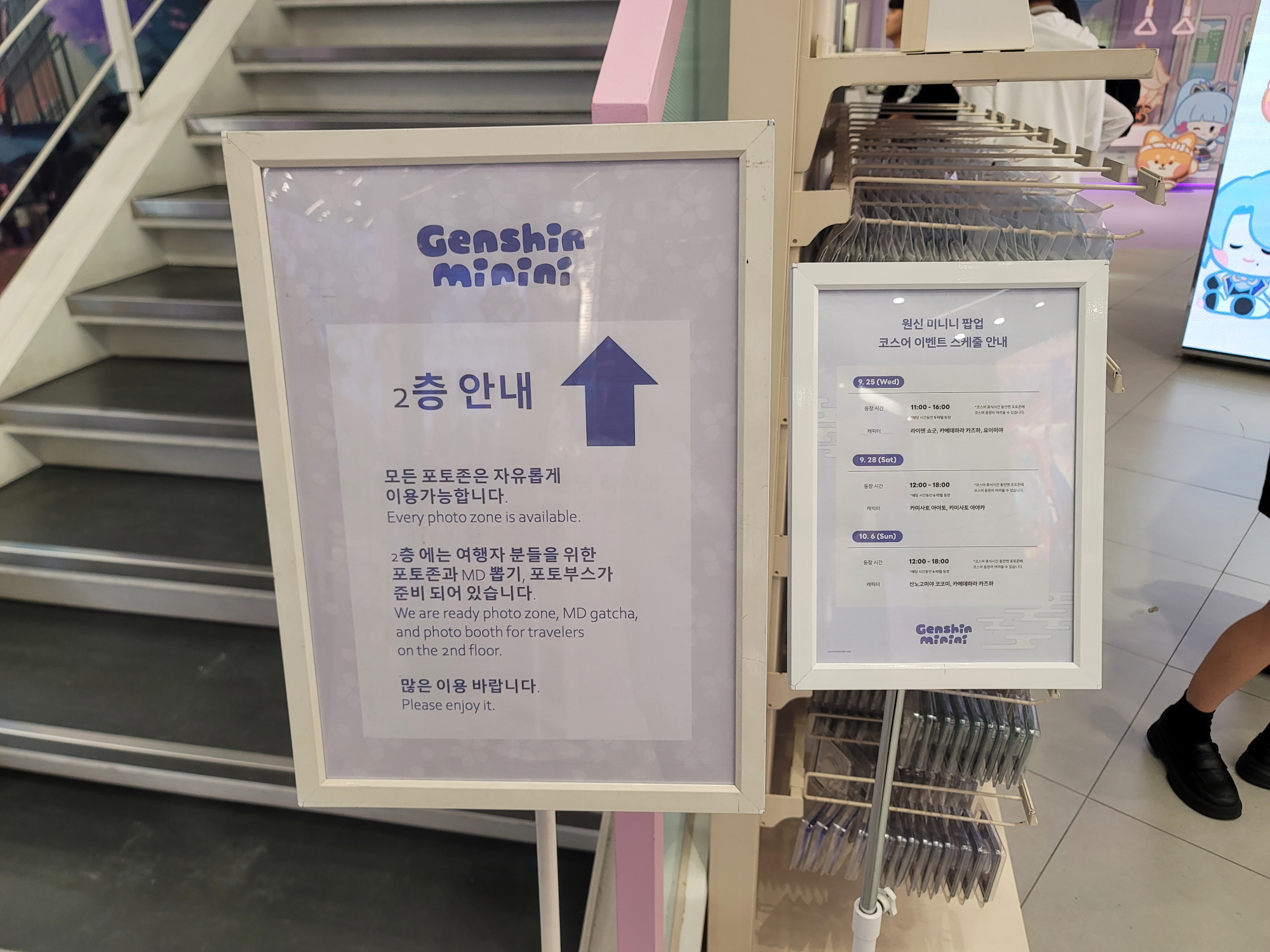 2층(3층?)에는 원신 뽑기 기계가 있는데 애가 동전 밖에 안되고 주변에 동전 교환기가 없으니 500원 짜리 동전을 구비해야 되네요. (계산대에서 교환되는지는 확인 못 함)