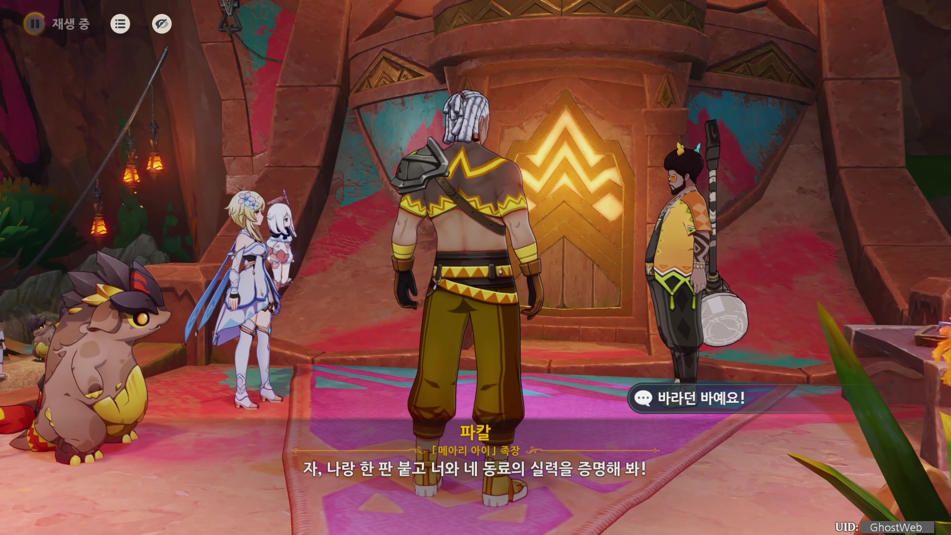 증표를 찾으러 가기 전에 증인의 시련일 필요하다는 망코지만 파칼은 그냥 자신과의 전투로 실력을 증명하면 된다고 하며 메아리 아이 결투장에서 보자고 해요.