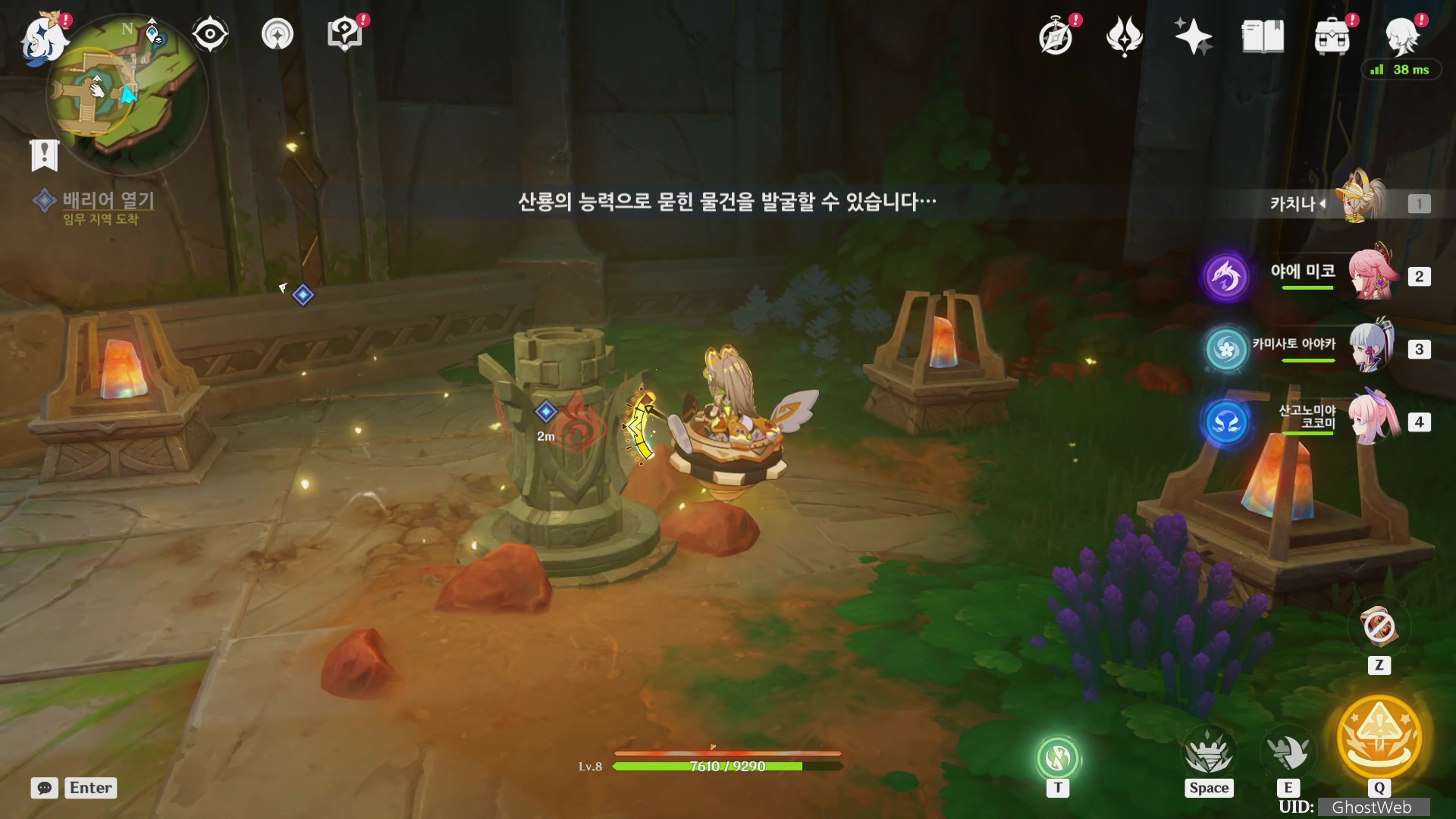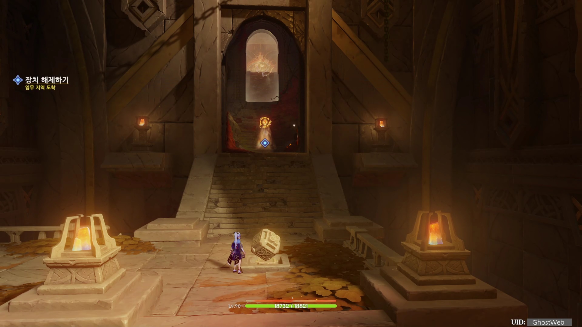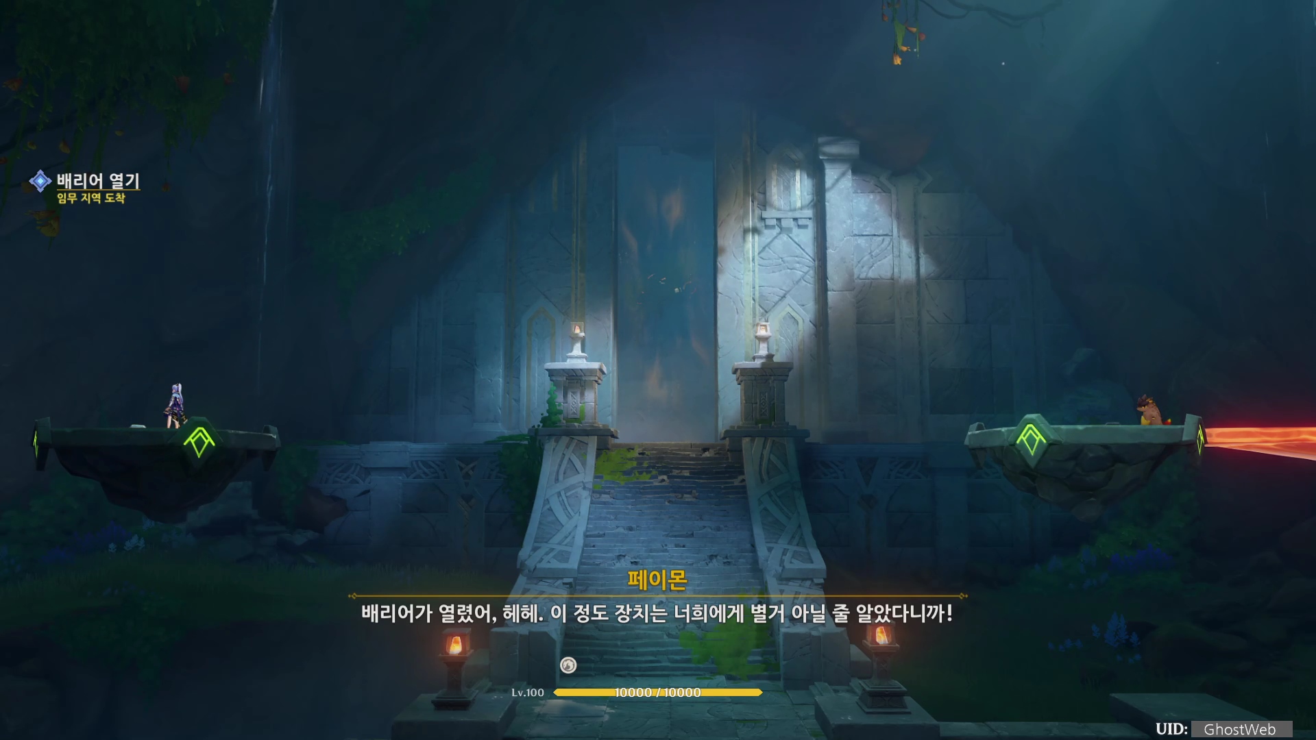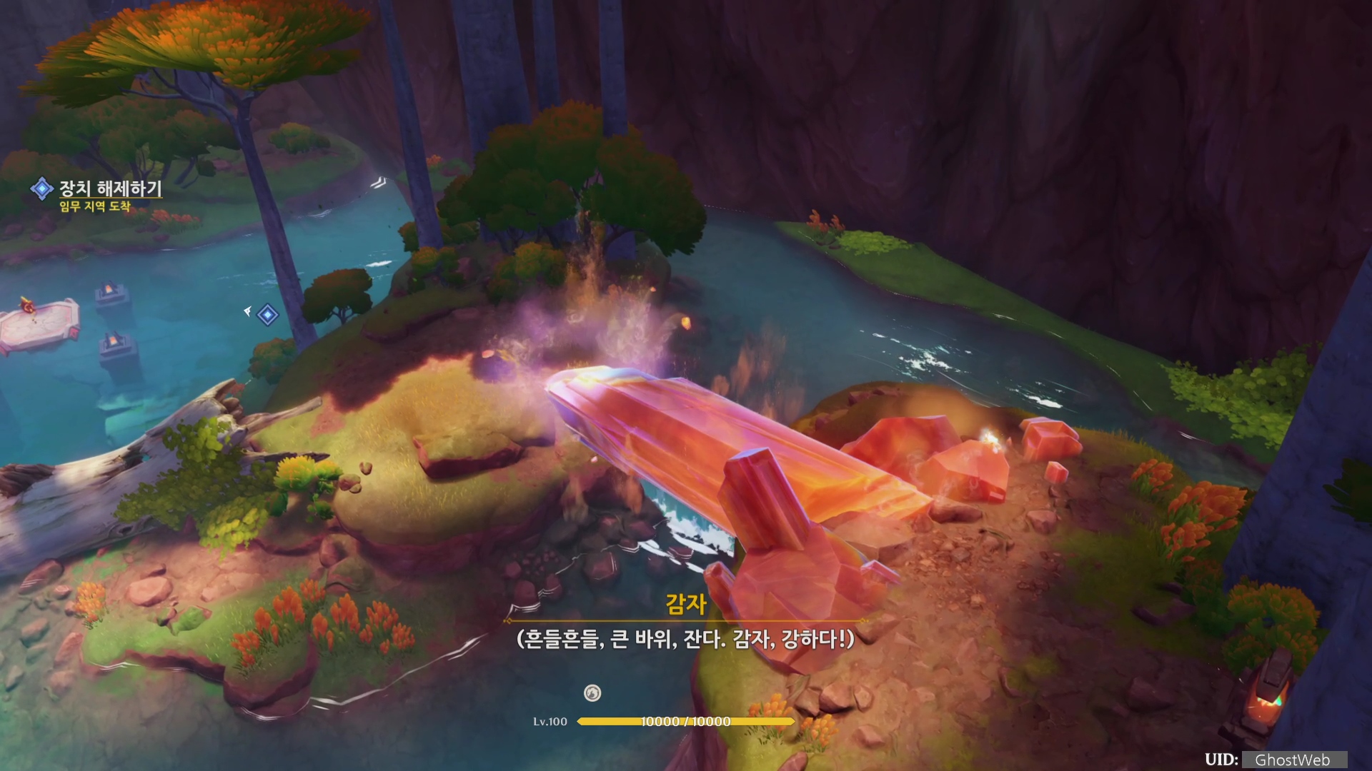 - 진동석 공격하여 파괴하여 길 뚫고 장치 해제하기 (여행자)