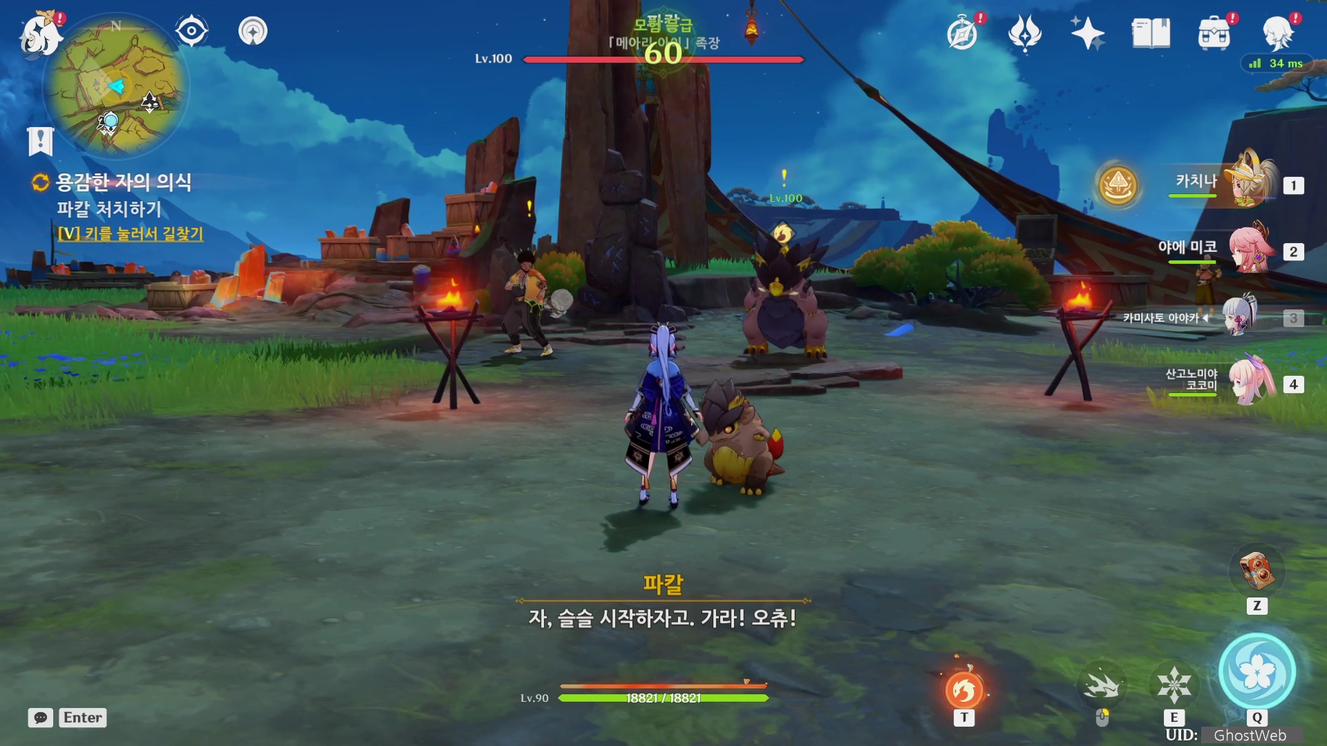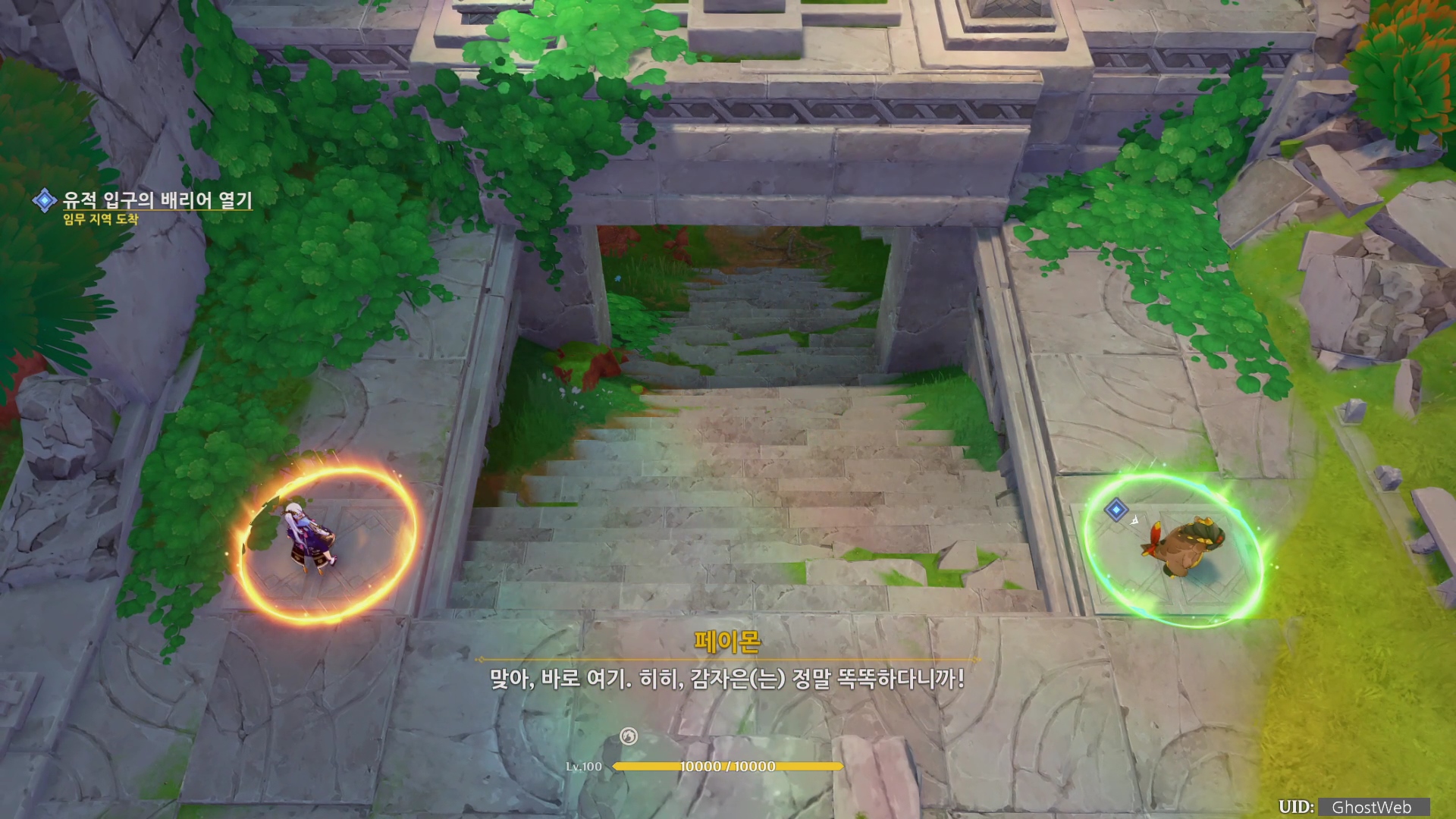 결투장에서 파칼을 처치하면 부족 족장의 증명(왁샤클라훈우바칸의 부적)을 받은 다음 불을 훔친 현자가 남긴 증표를 얻을러 가기 위해 유적으로 가서 적을 처치하고 부적을 공양하면 유적 입구가 나타나요.