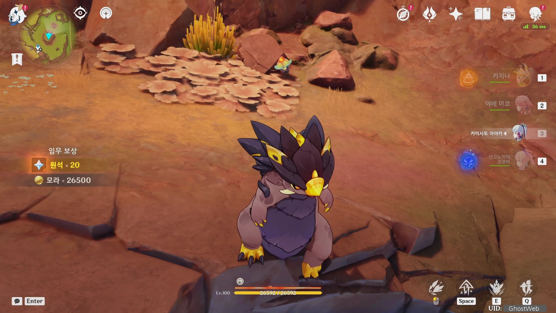 오르코는 아빠를 위해서라는 대화를 끝으로 마마 카카와 같이 마을로 돌아가는 것을 끝으로 임무가 완료되며 임무 보상으로 원석 20개, 26500 모라를 얻을 수 있어요.