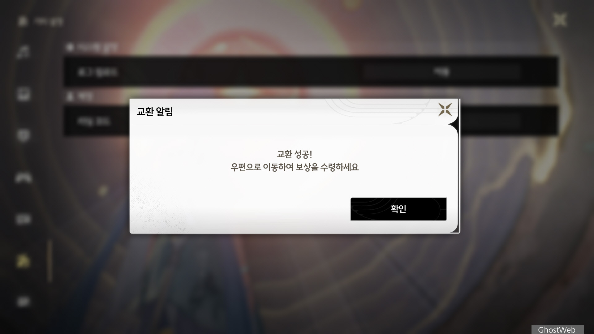 리딤 코드 입력창이 뜨는데 여기에다 얻으신 리딤 코드를 입력하고 확인 버튼을 클릭하면 조금 있다가 메일함에 보상이 들어와 있는 것을 확인할 수 있어요.