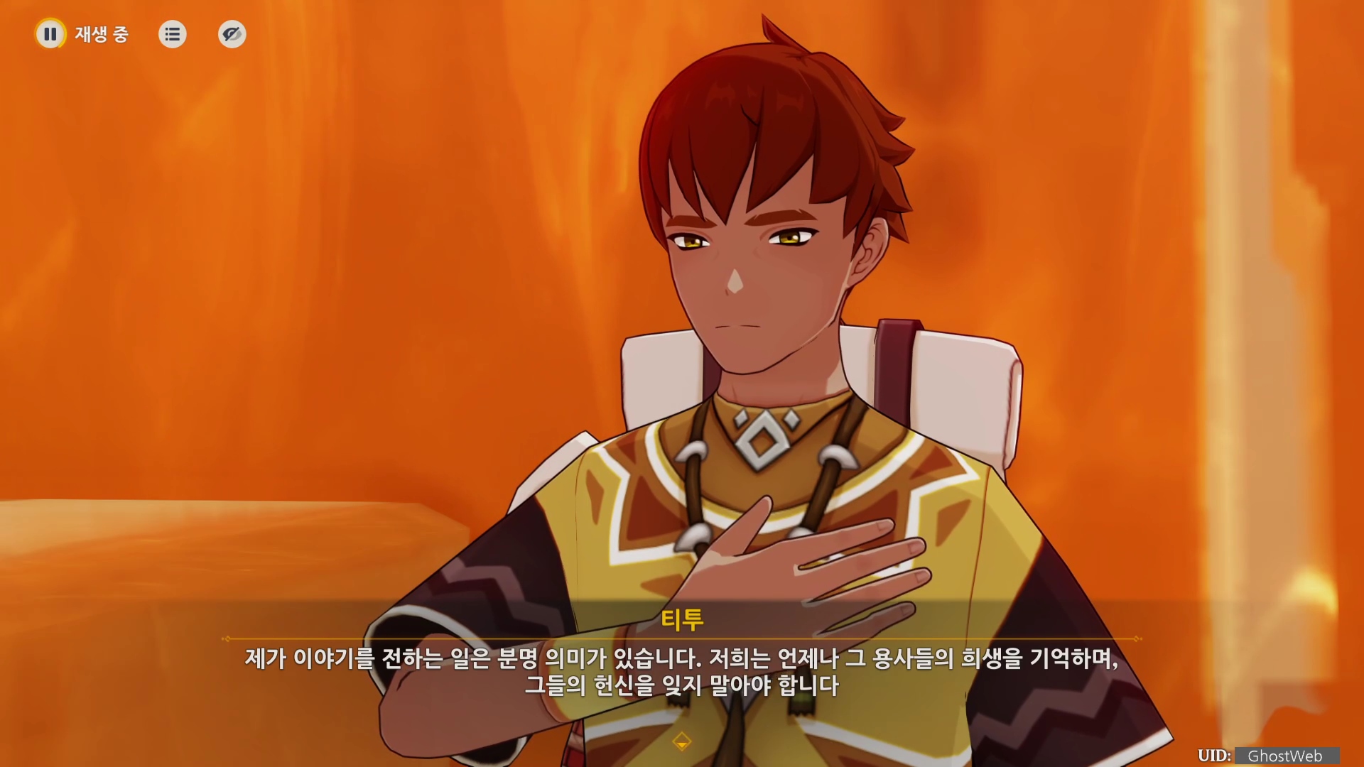 원래 지역으로 돌아와 티투와 대화를 끝으로 임무 보상 원석 40개, 영웅의 경험 2개와 보물상자를 열면 빛새김 각문 파편 1개를 얻으며 선조 추모 업적을 달성할 수 있어요.