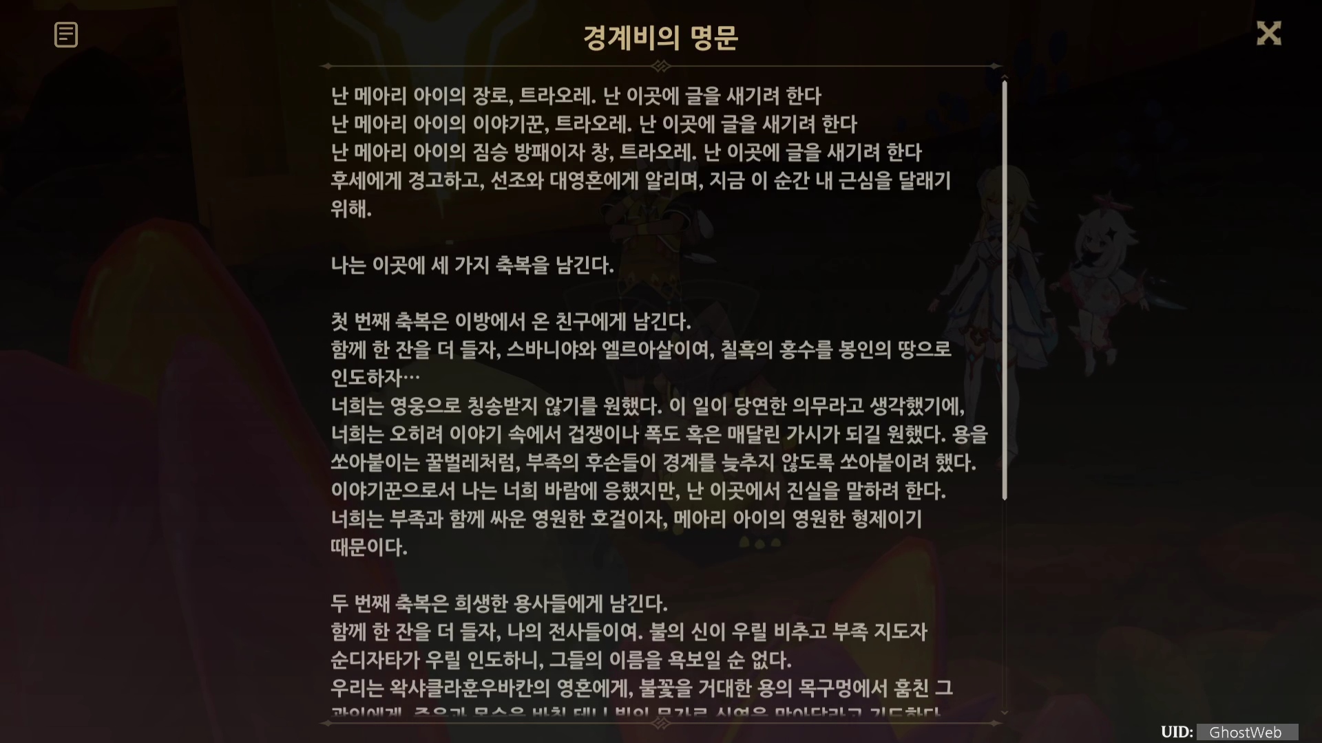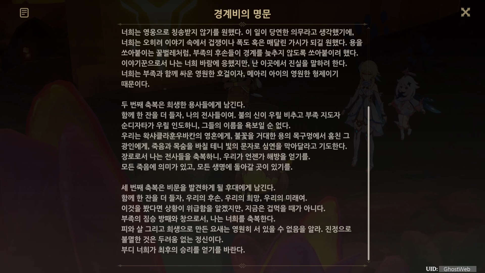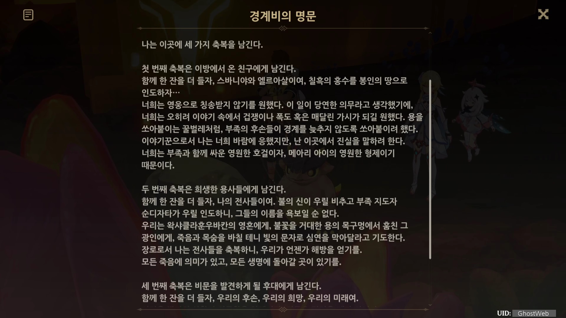 | [원신] 별에게 비는 소원 (나타 월드 임무, 오르코, 별 조각, 코이로르와 우쿠쿠의 이야기) (0) | 2024.10.06 |
