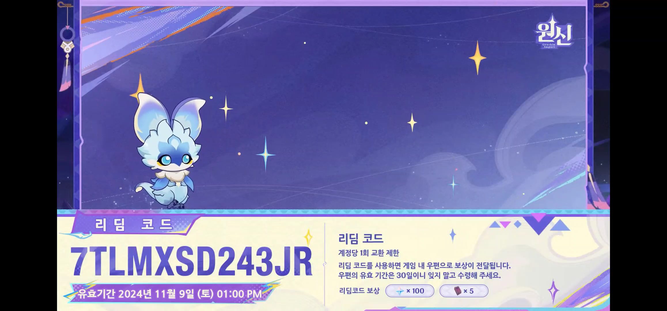 원신 업데이트 특별 방송 등을 보면 중간 마다 리딤코드라는 것을 보여주는데 이를 원신 홈페이지에서 입력하면 원석과 각 코드별로 아이템을 얻을 수 있어요. ※ 유효기간은 대부분 특별 방송