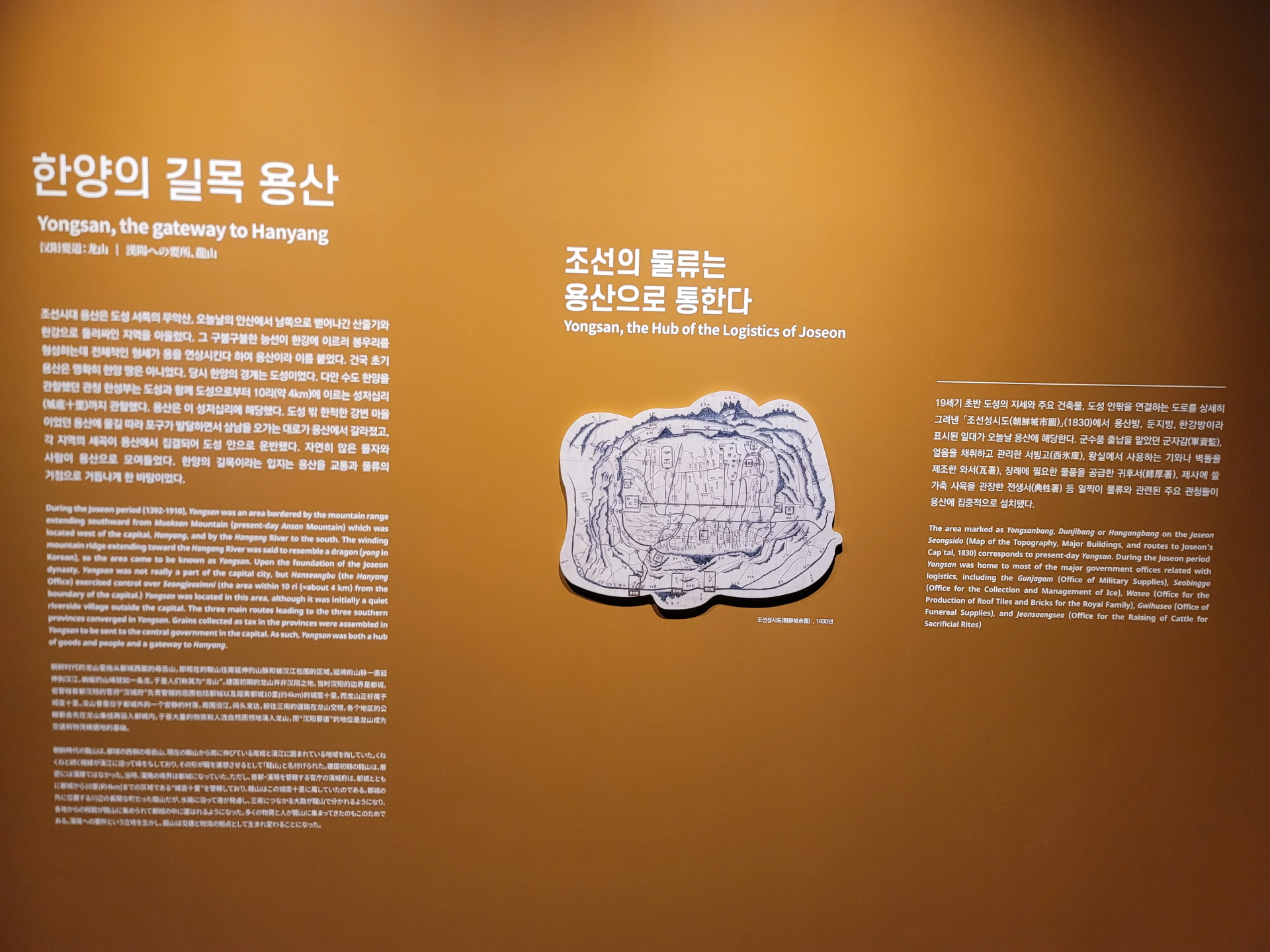 | - 한양의 길목 용산 - 조선을 움직인 거상, 경강 상인 - 군사 기지로 새로운 지형을 그리게 된 용산 - 냉전 속에서도 뜨겁기만 했던 용산 - 인터섹션 체험존 - 철도 교통의 중심이 된 용산 - 철도 의료의 본거지, 용산철도병원 - 아카이브미디어월 |