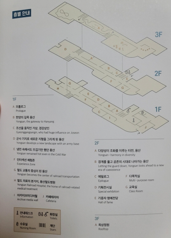 - 다양성이 조화를 이루는 터전, 용산 - 경계를 풀고 공존의 시대로 나아가는 용산 - 에필로그 - 다목적실 - 기획전시실 - 교육실 - 기증자 명예전당 |