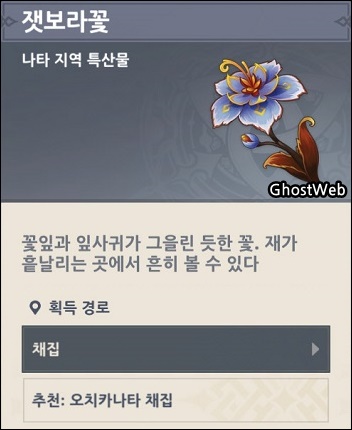 - 잿보라꽃 (나타 채집, 나타 지역 특산물)