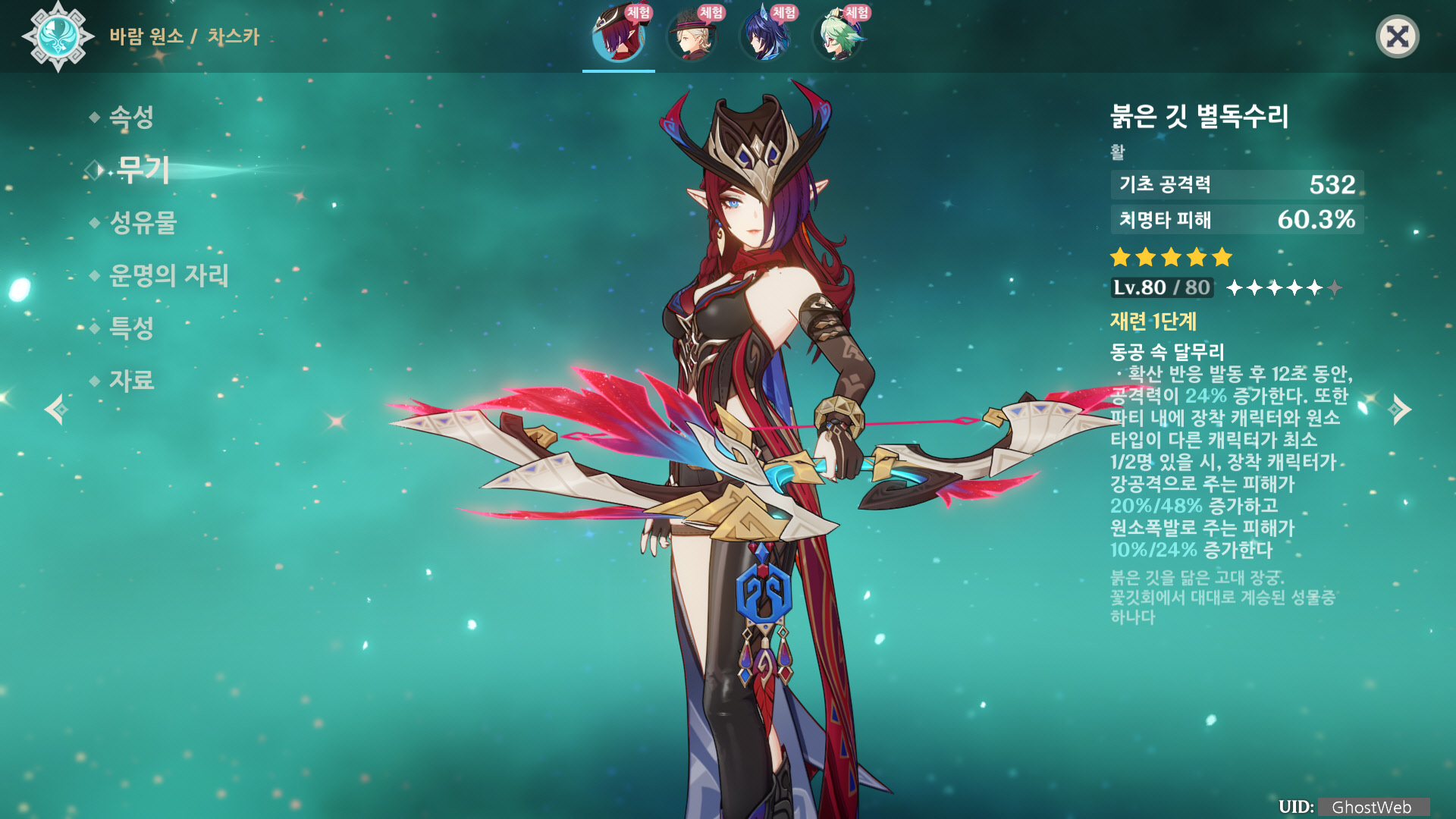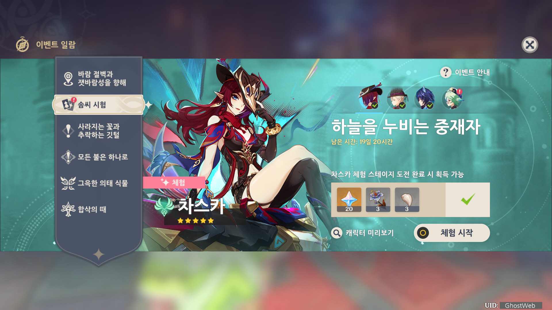 이번에는 5성 바람 원소 캐릭터인 차스카에 대해서 정리해보도록 할게요.
