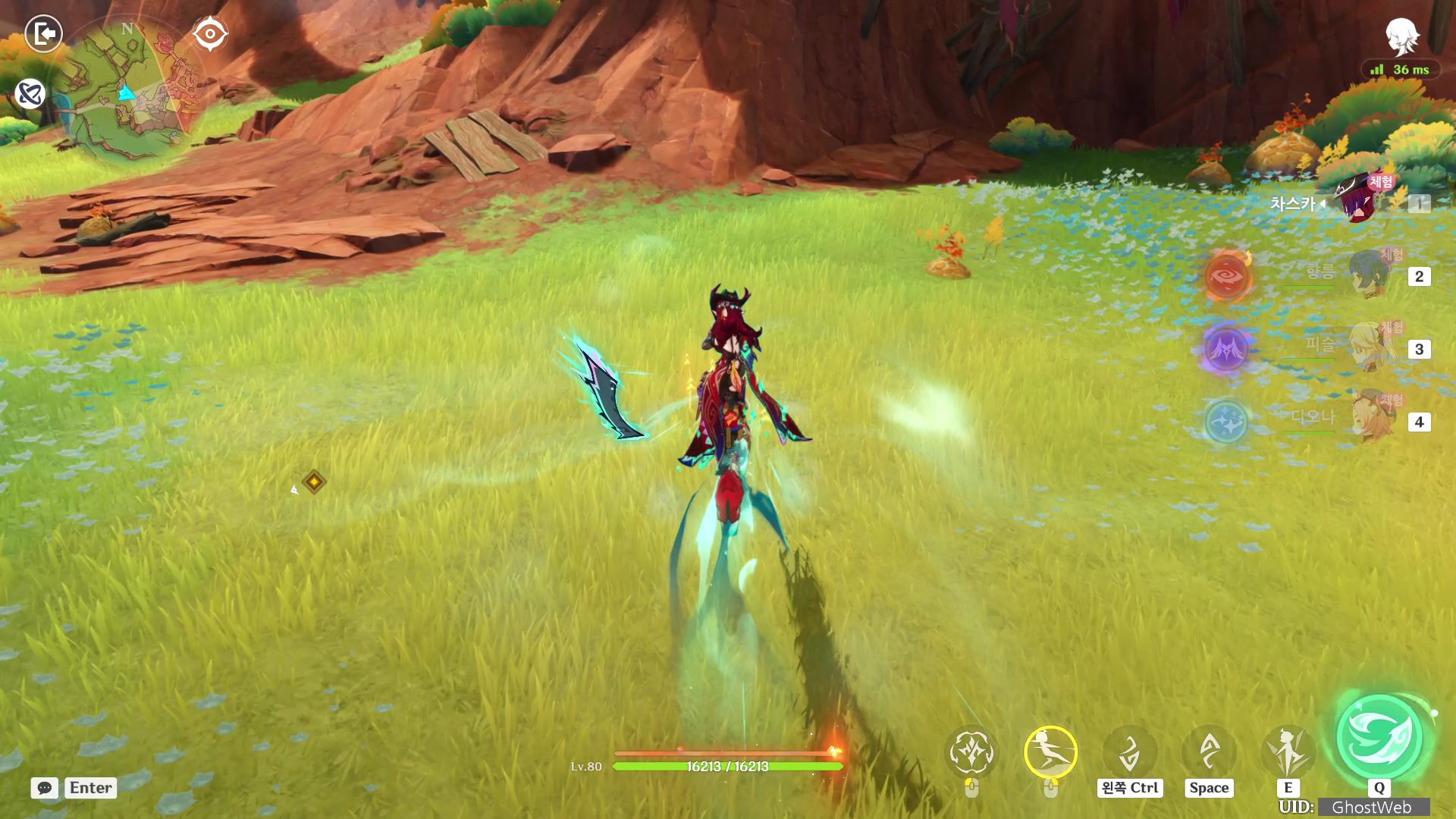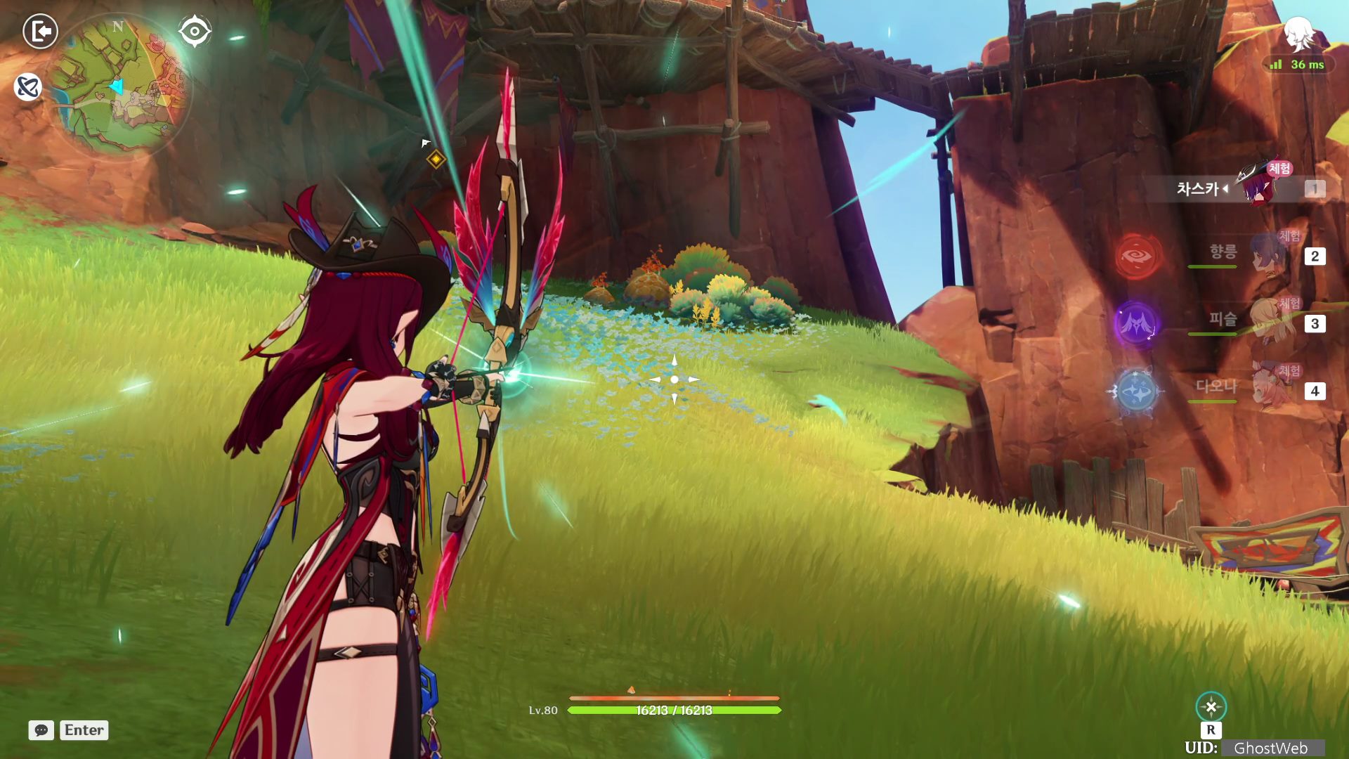 차스카의 원소 전투 스킬은 총을 타고 날라다니는 것으로 나타 신규 지역인 오츠카나타를 탐험하기 좋으며, 여러 원소 속성의 캐릭터로 파티를 구성했을 시 추가 적인 공격 효과가 있어요.