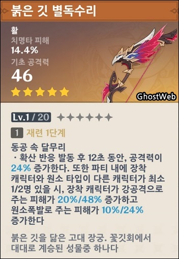○ 무기 : 활 (전용 무기 : 붉은 깃 별독수리)
