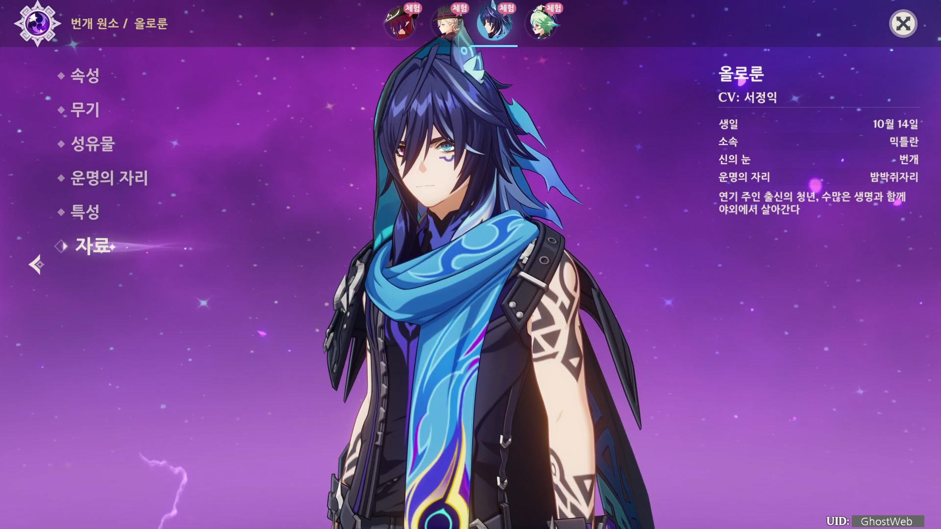 이번에는 5.2버전 신규 4성 번개 원소 캐릭터인 올로룬에 대해서 정리해보도록 할게요.