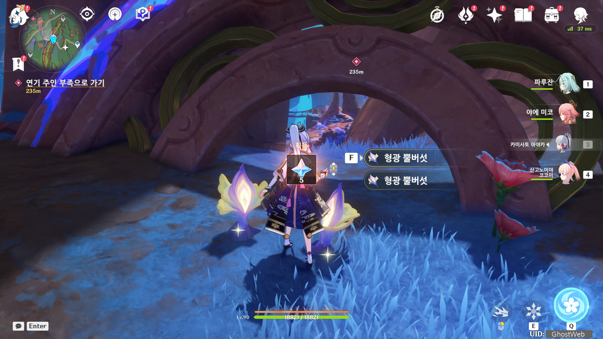 형광 뿔버섯은 올로룬 돌파 소재 답게 연기 주인 근처에 물 가를 따라서 위치하고 있으며, 여러 개가 군집하고 있어서 단 시간 내에 많은 수량을 모을 수 있어요.